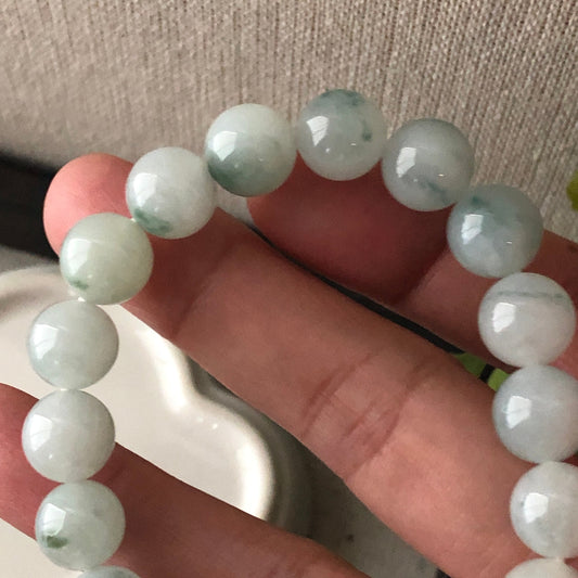 10 mm Grade A Icy Tint Green Jadeite Jade Bead Bracelet 10 mm x 19 pcs.