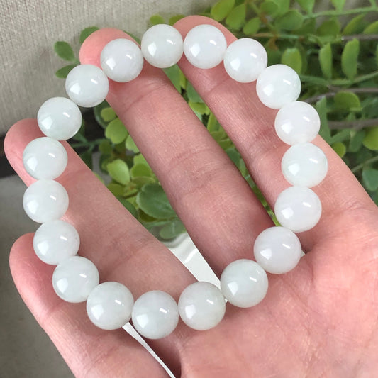 10 mm Icy Light Pink Lavender Jadeite Jade Bead Bracelet