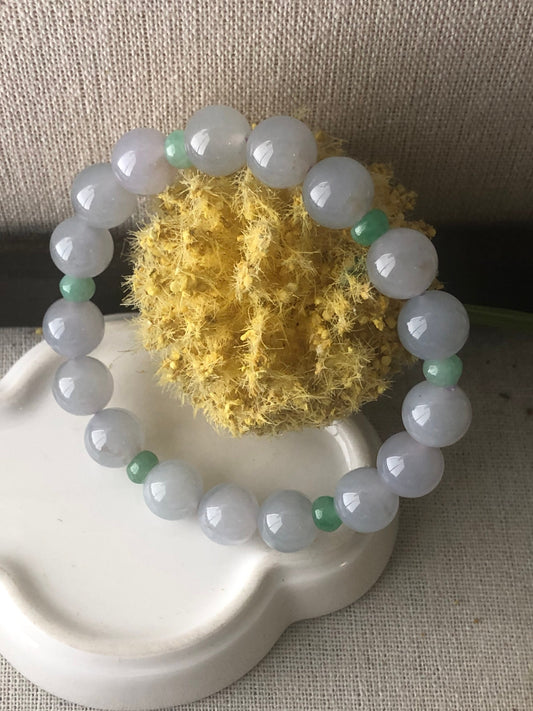 10 mm Icy Lavender Blue Jadeite Jade Bead Bracelet