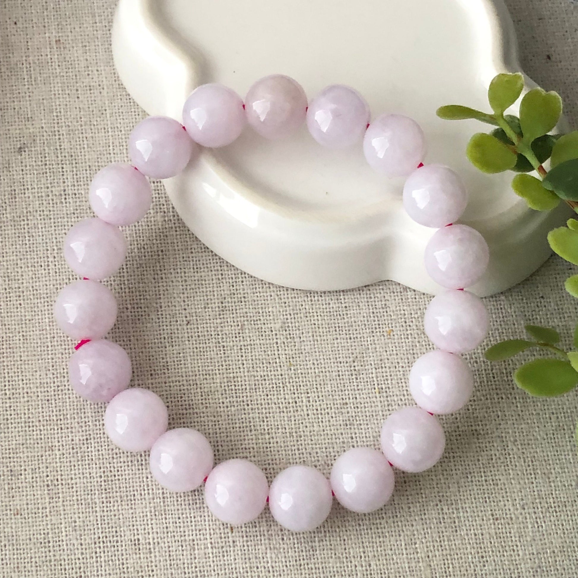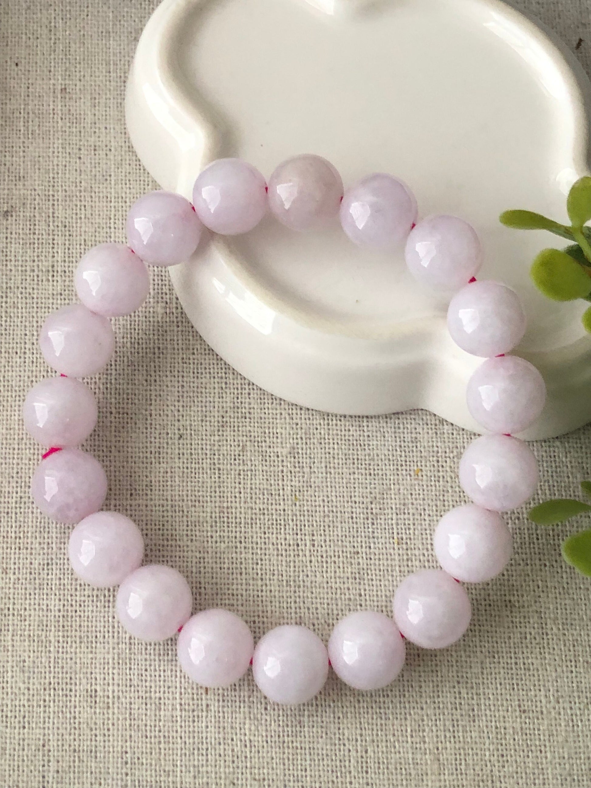 10 mm Icy Light Pink Lavender Jadeite Jade Bead Bracelet