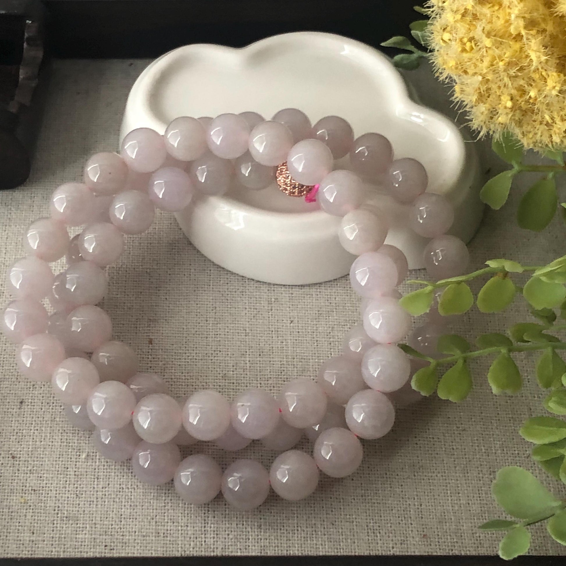 10mm Glossy Pink Jadeite Jade Bead Bracelet Necklace