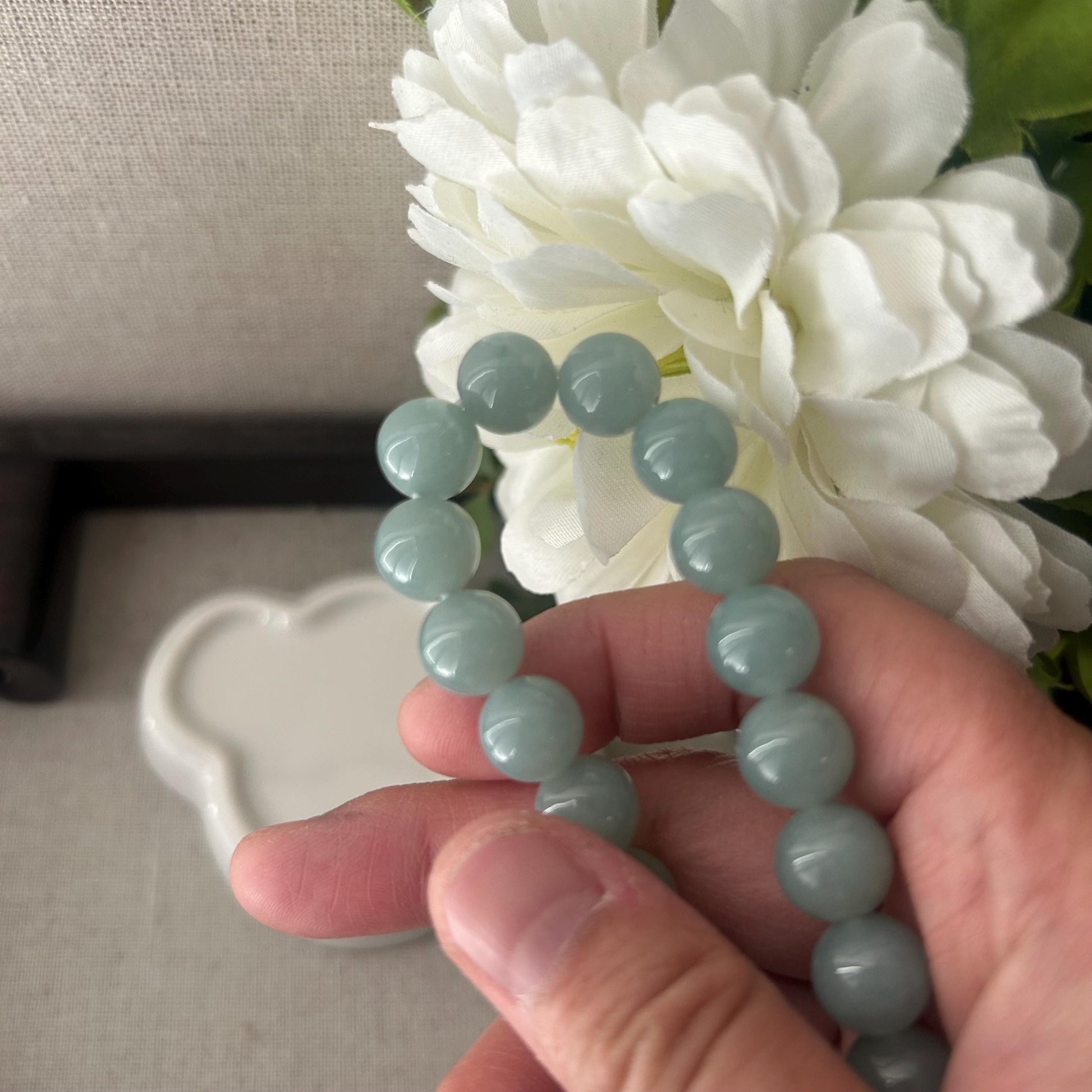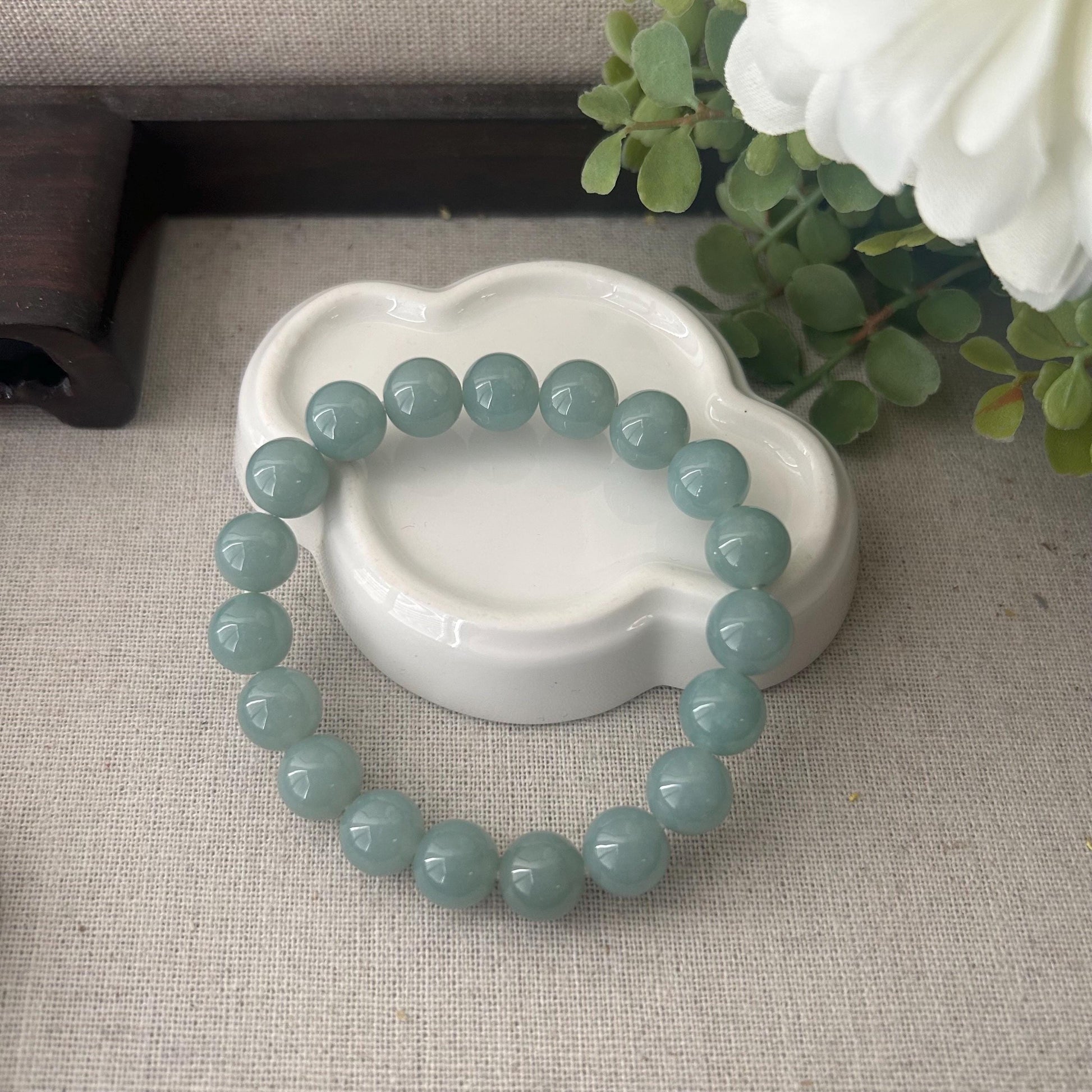 10mm Glossy Rich Sky Blue Jadeite Jade Bead Bracelet