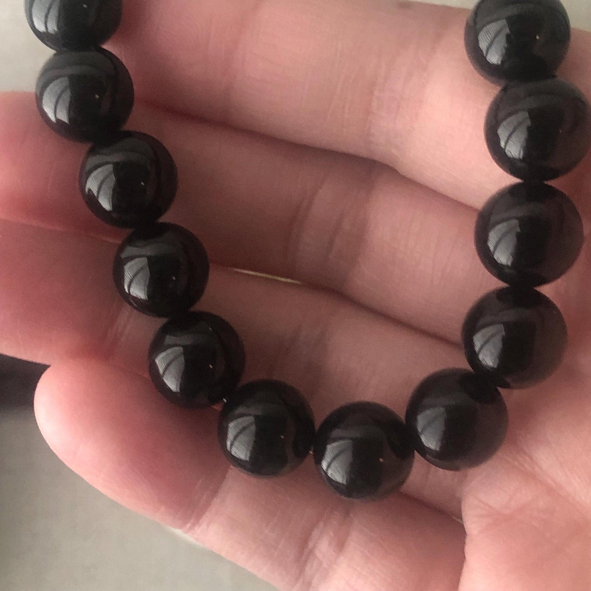 ✅ 10mm High Glossy Omphacite Black Jadeite Jade Bead Bracelet