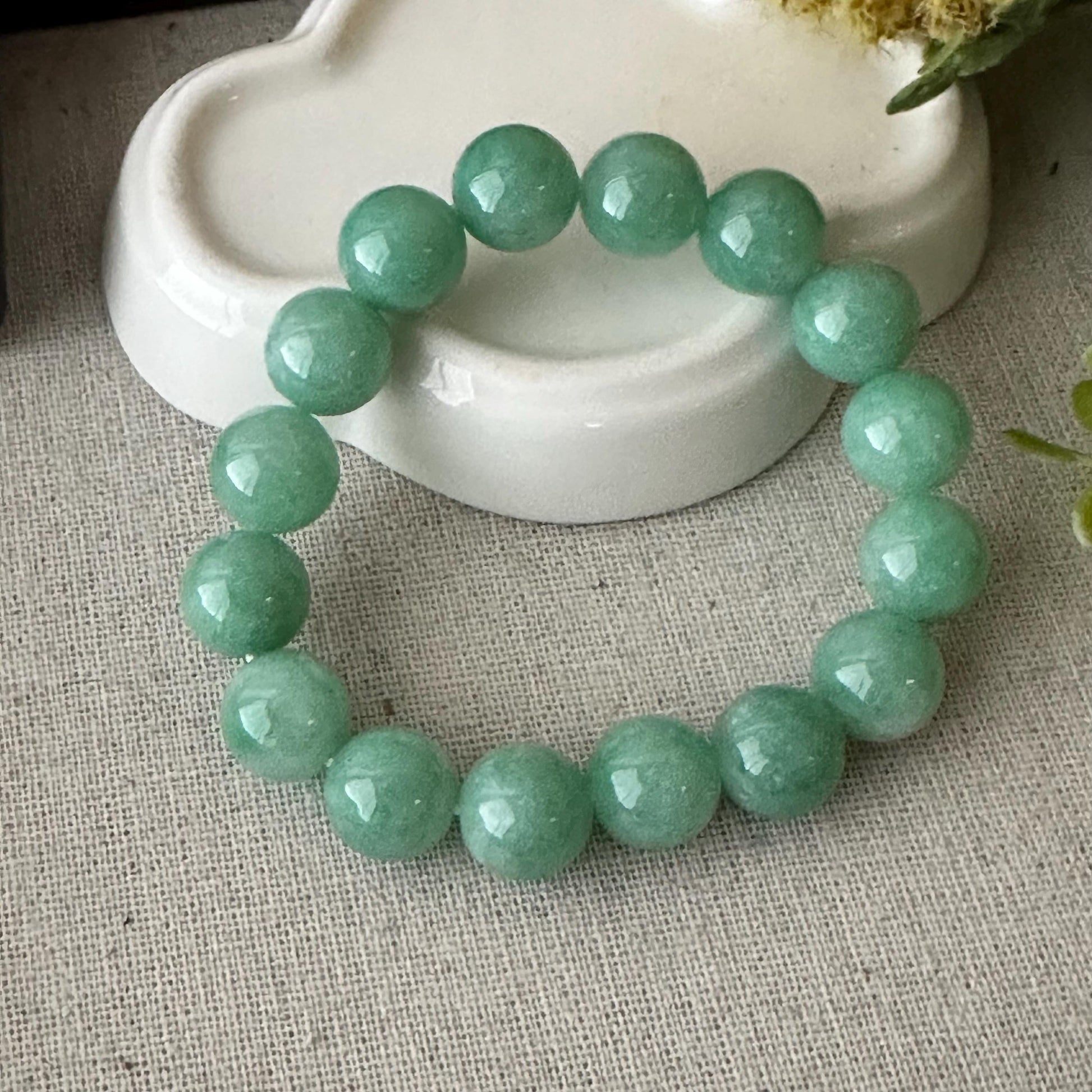 11.5mm Glossy Vibrant Green Jadeite Jade Bead Bracelet