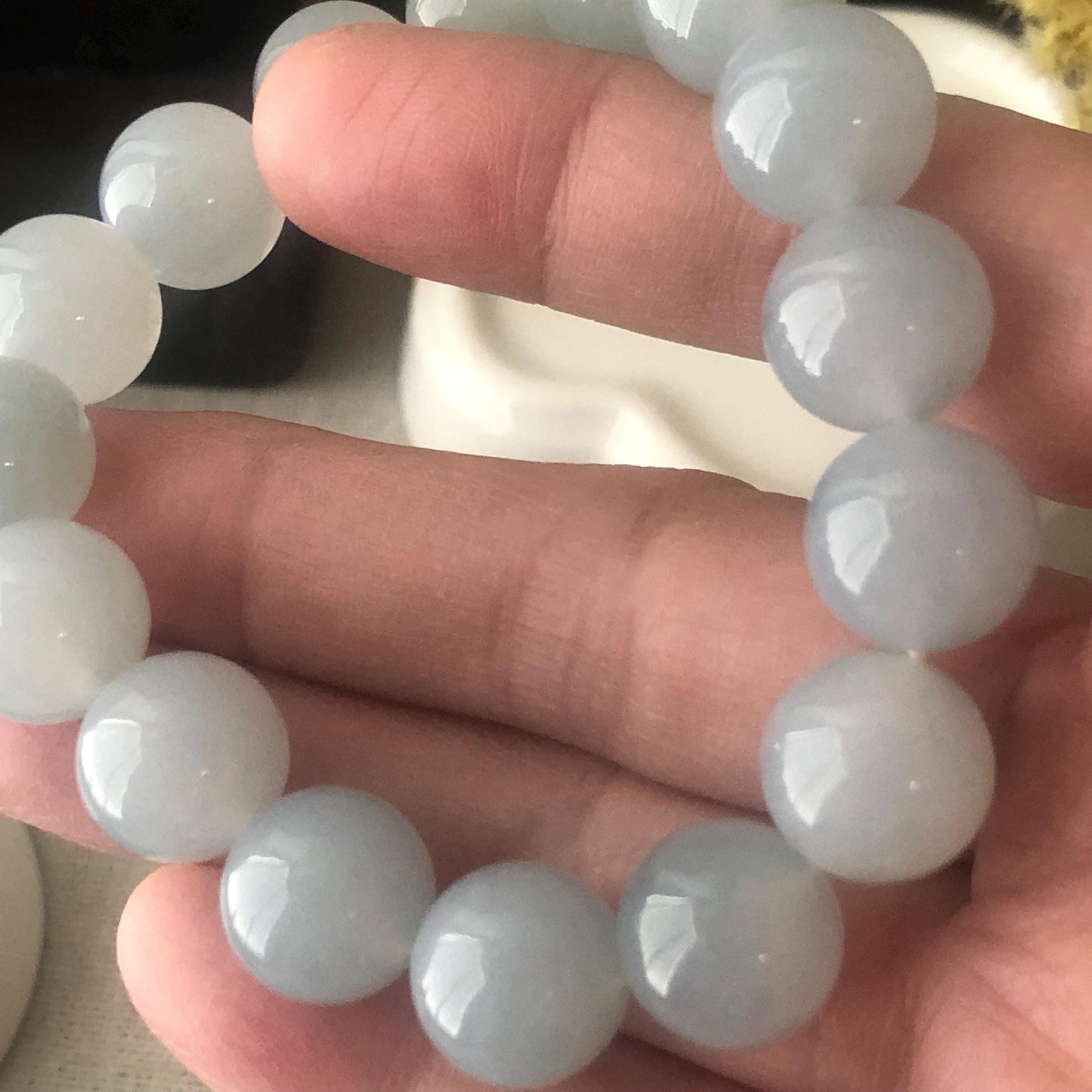Comments: Beautiful sky blue glow. glossy and pretty. all Burma jade. excellent quality. flawless.