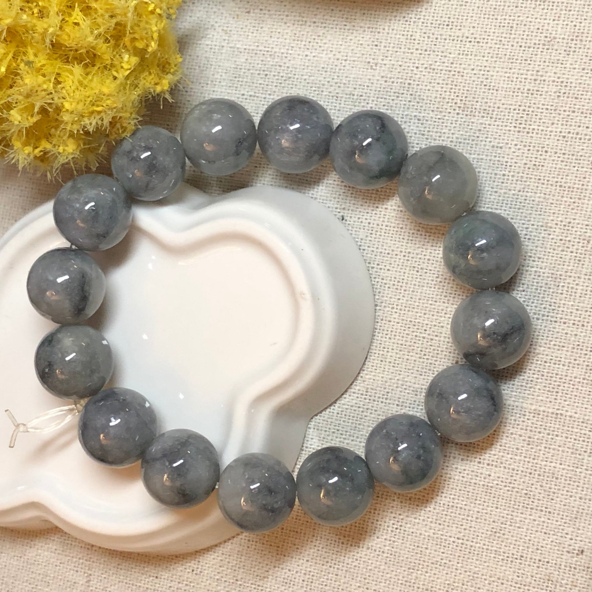 13.1 mm Grade A Wuji Grey Jadeite Jade Bead Bracelet 13.1 mm x 16 pcs. Style A