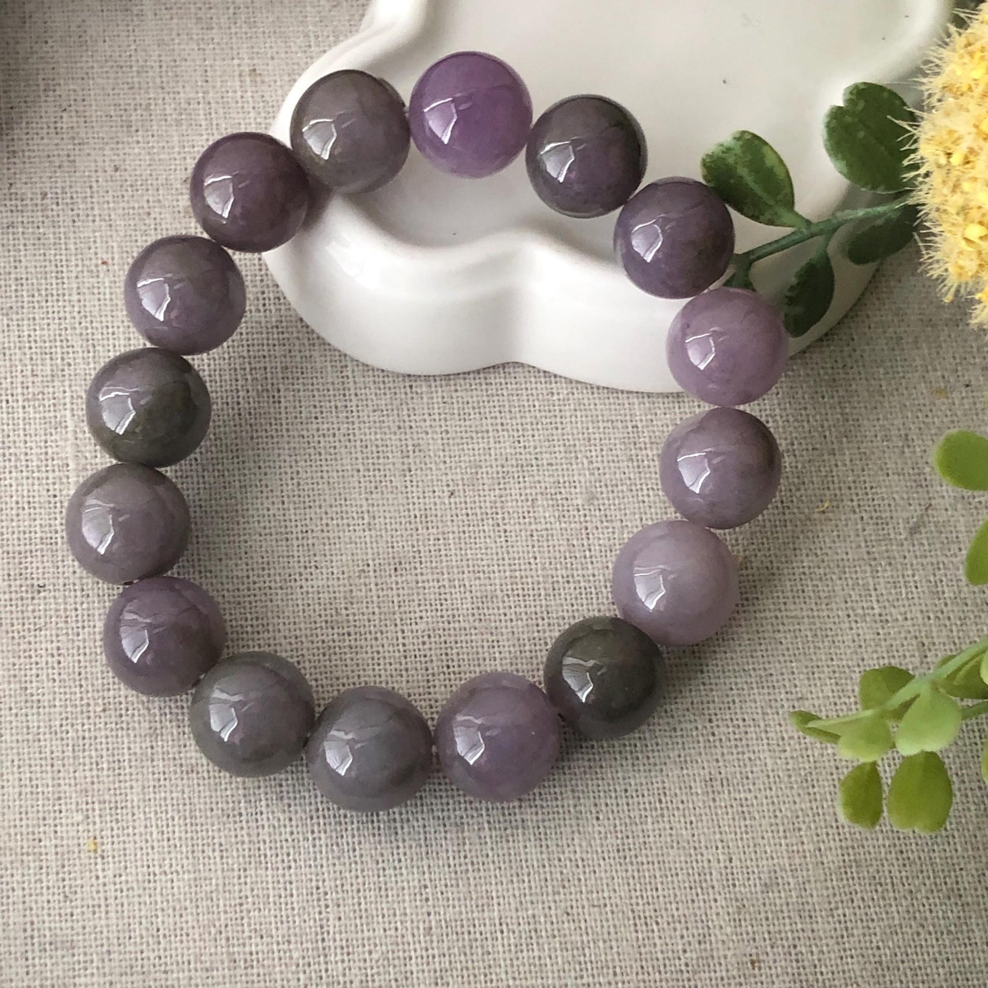 13.5mm Wuji Lavender Jade Jadeite Bead Bracelet
