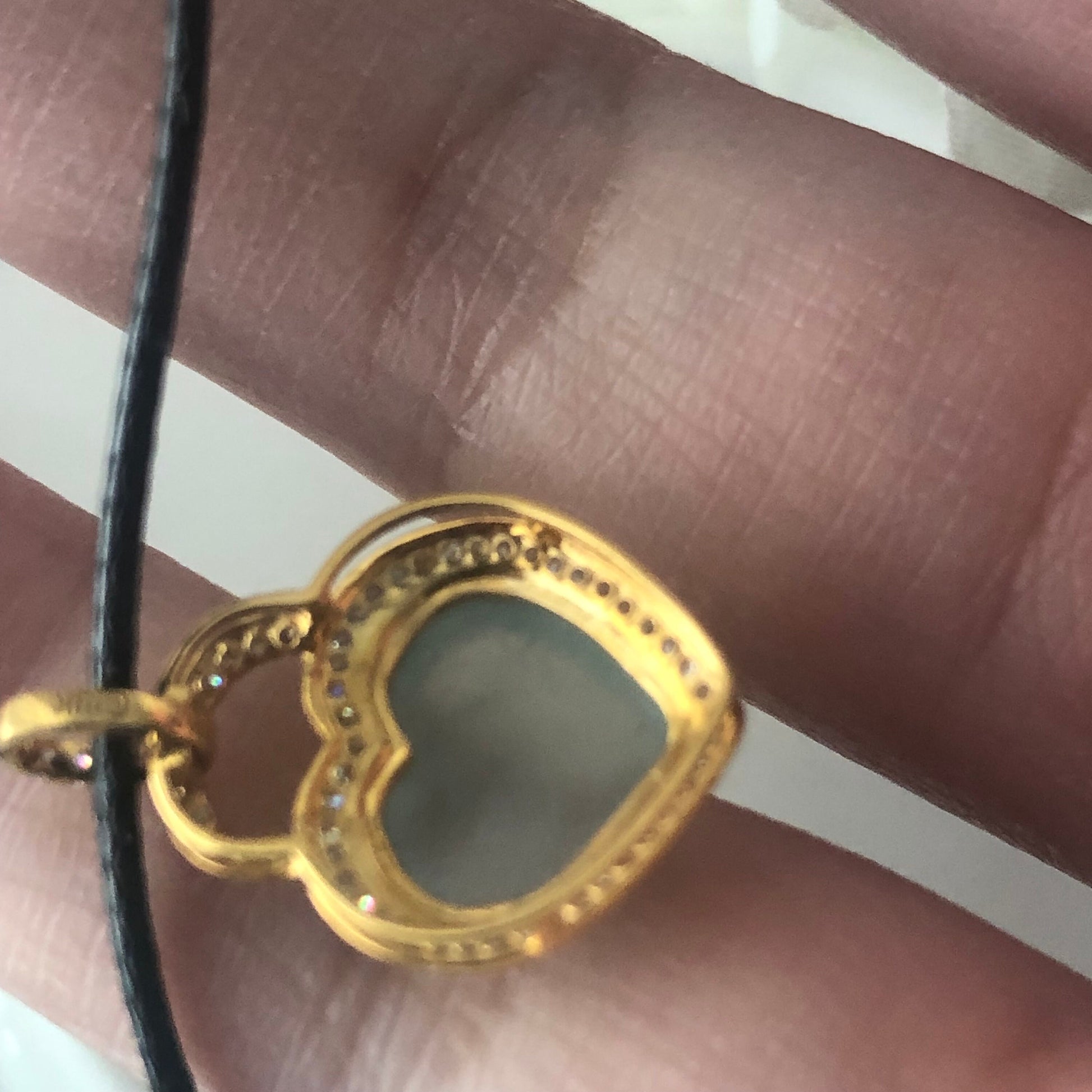 18K 20mm Jadeite Jade Green Heart Pendant Diamonds
