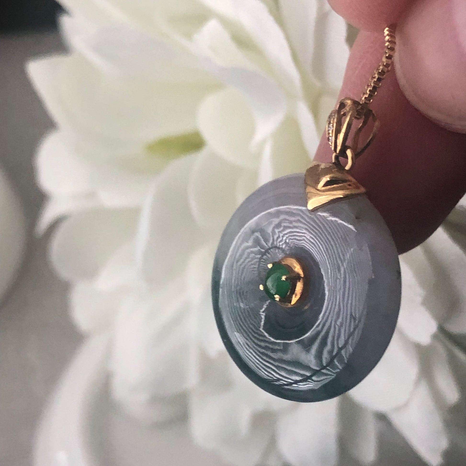 Comments: Ready to ship. Designed exclusively for WJ. Very elegant and classy to wear. Jade is set on 18K yellow gold with small diamonds and green jade. Small and Dainty but unique.