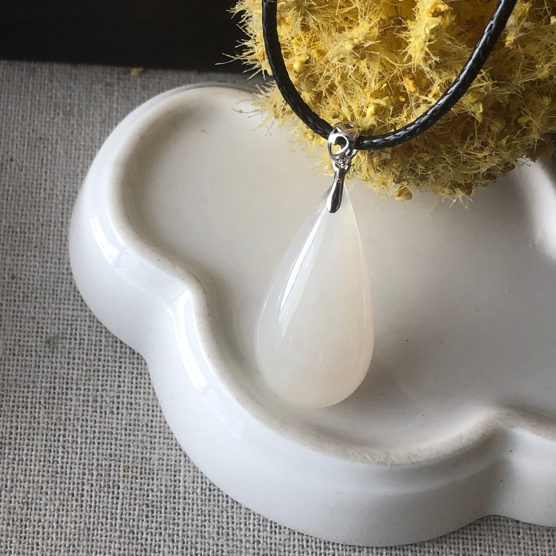 18K 30mm Pinkish Hetian Jade Waterdrop Pendant with 18K bail