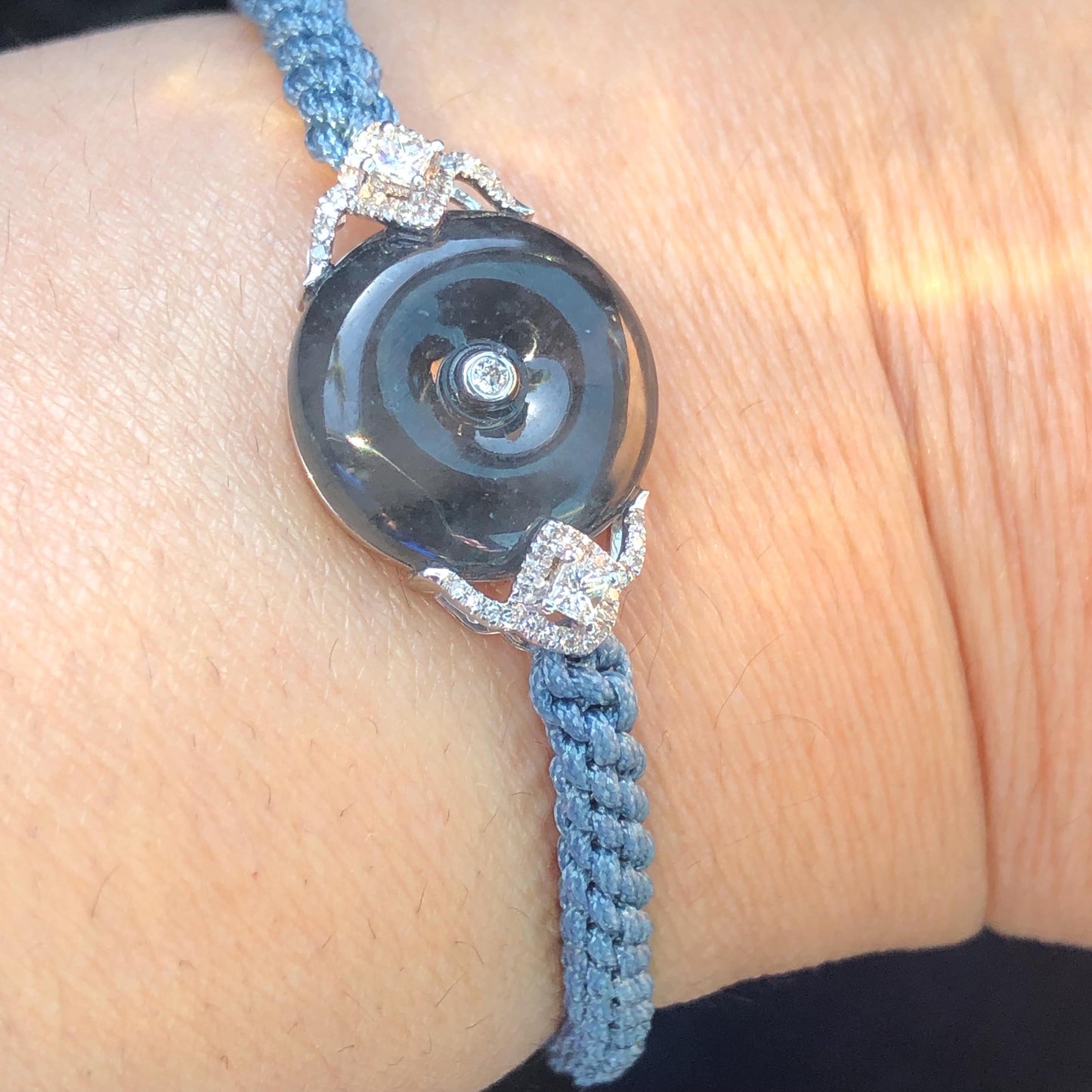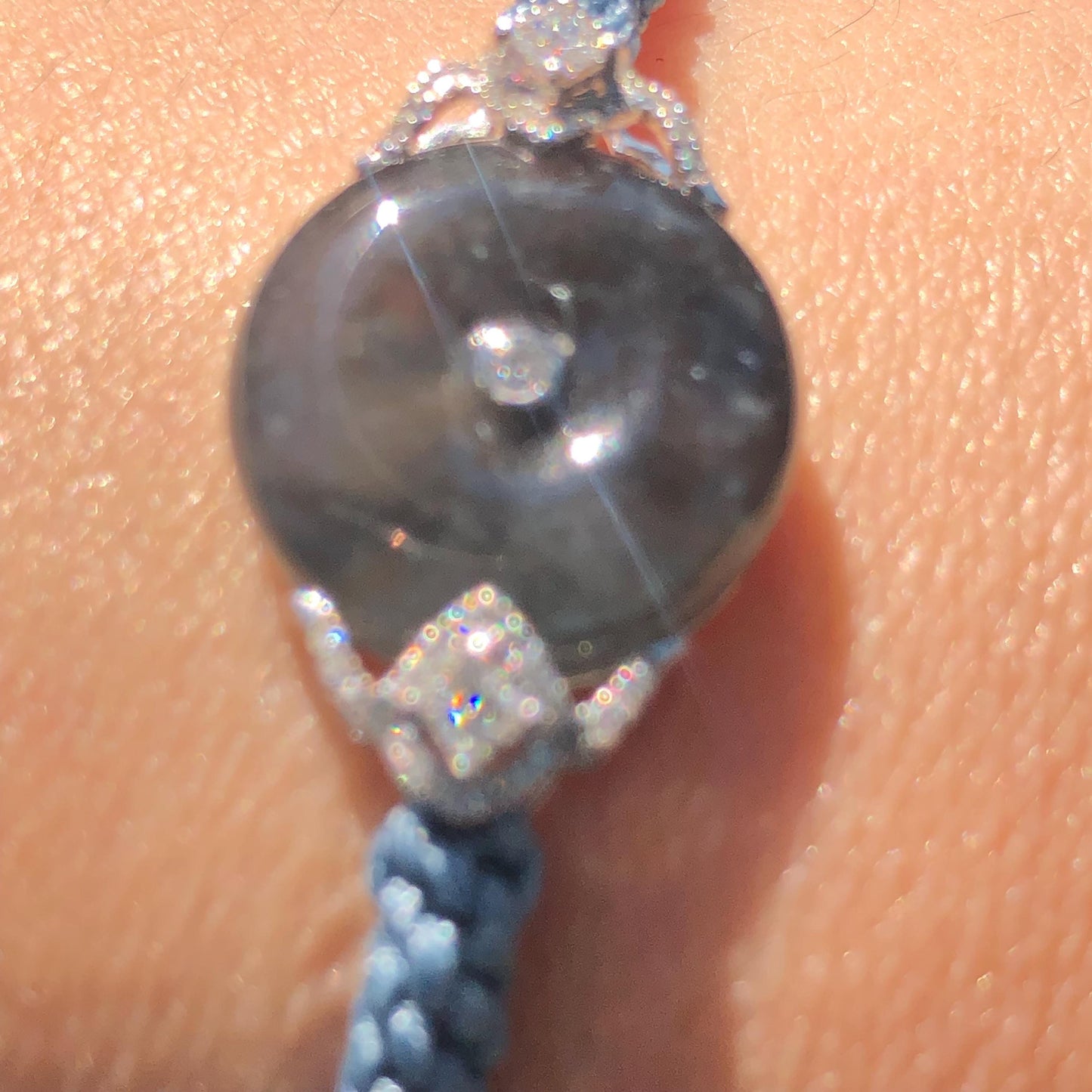 18K white gold 14.5 mm Icy Wuji Donut Jade Adjustable handmade Bracelet