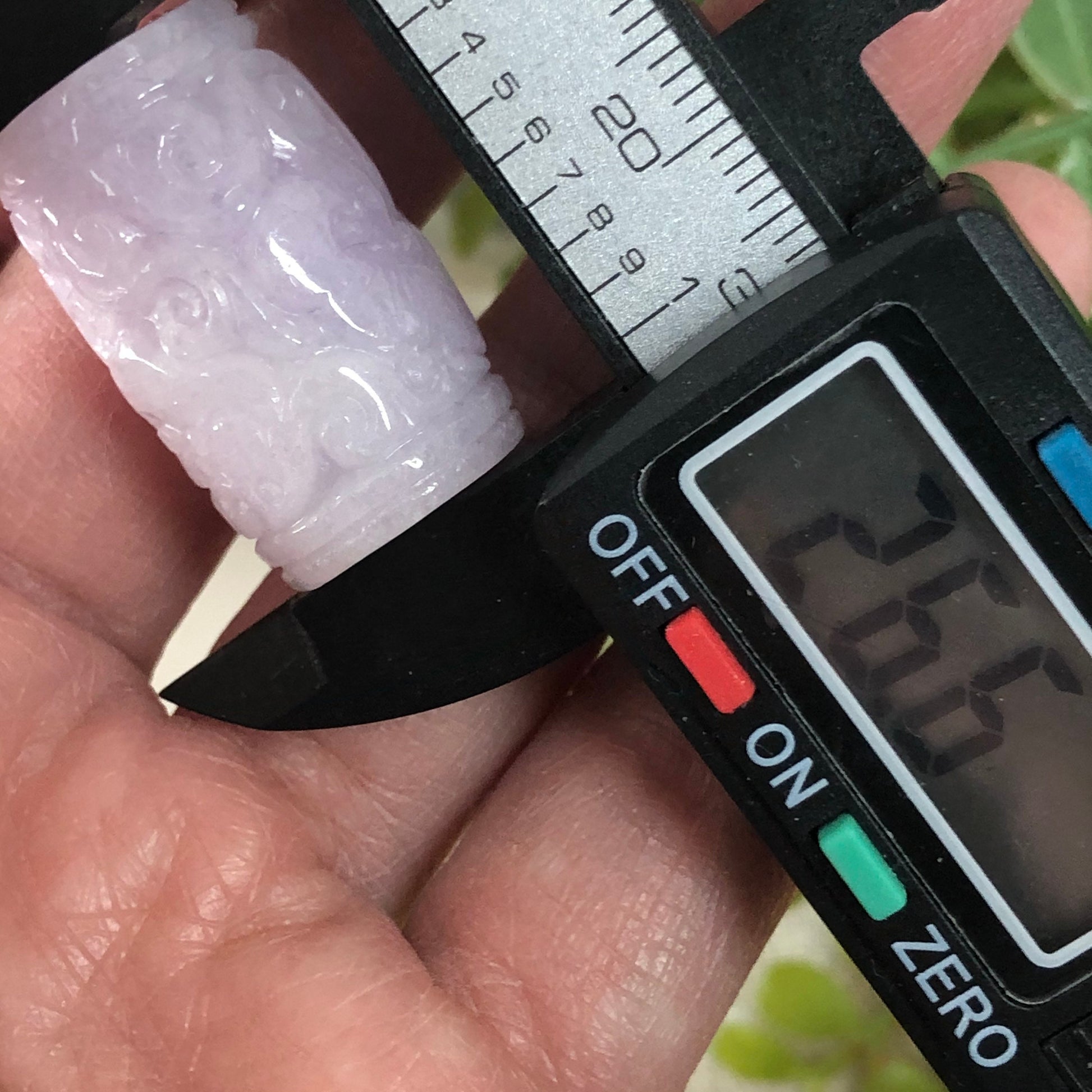 26.6mm Jadeite Jade Carved Asian Pattern Barrel Lavender Pendant Bead 925 necklace