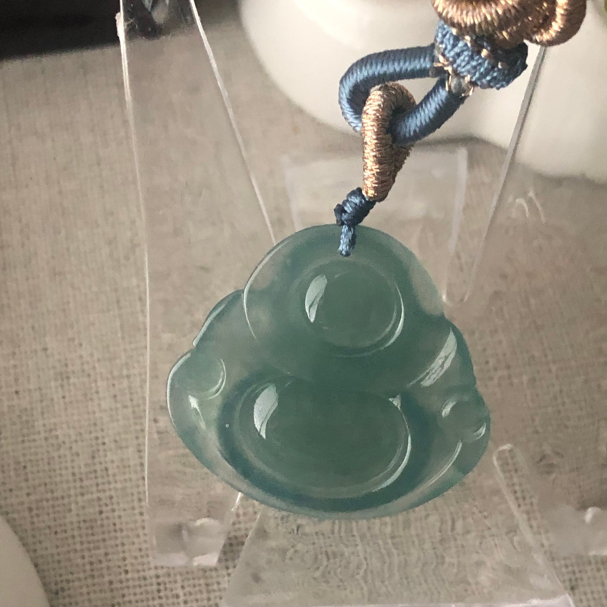 26mm Icy Blue Green Jadeite Jade Carved Happy Buddha Charm Pendant
