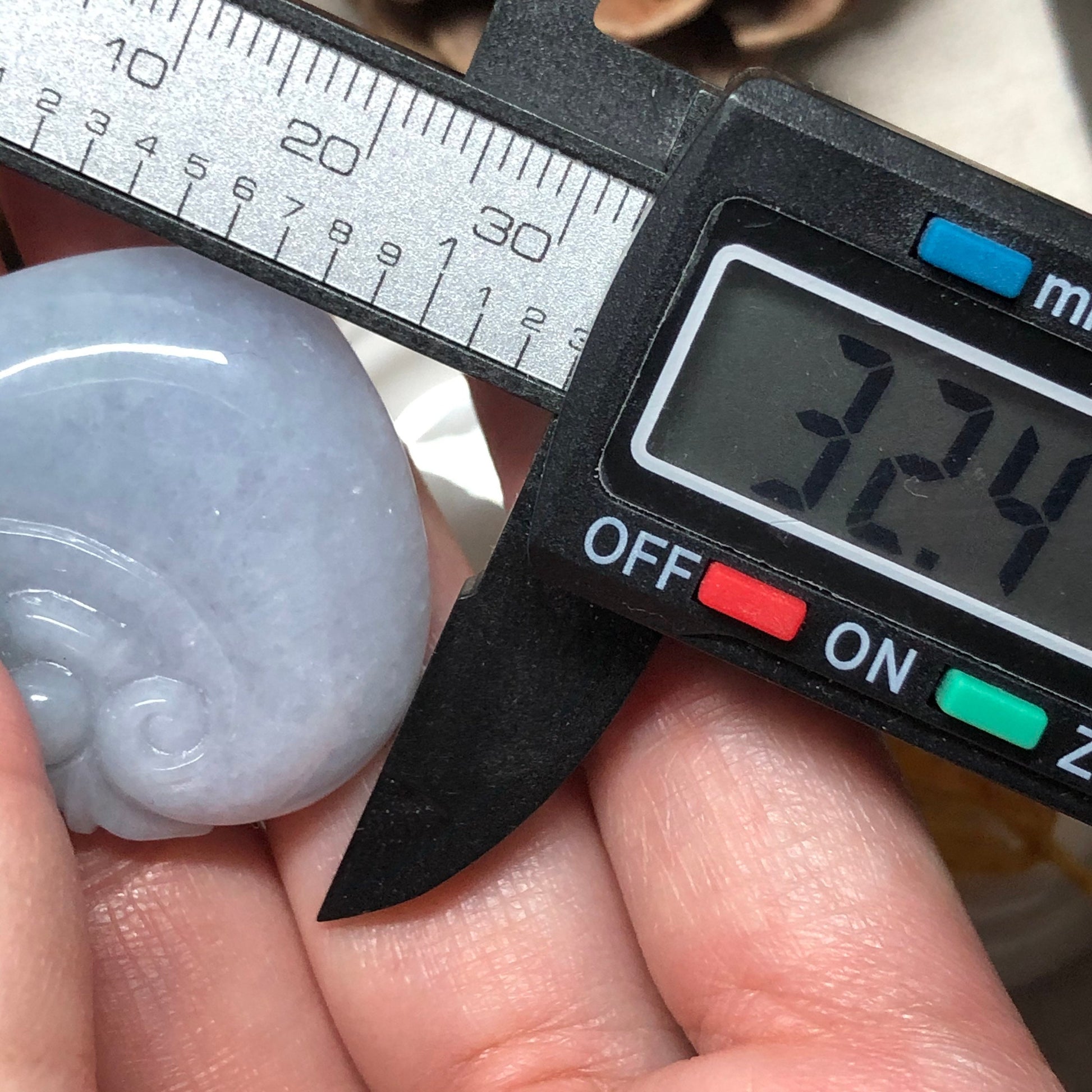 32.4 mm Certified Myanmar Grade A Lavender Blue Green Carved Ruyi Pendant with neck rope tie