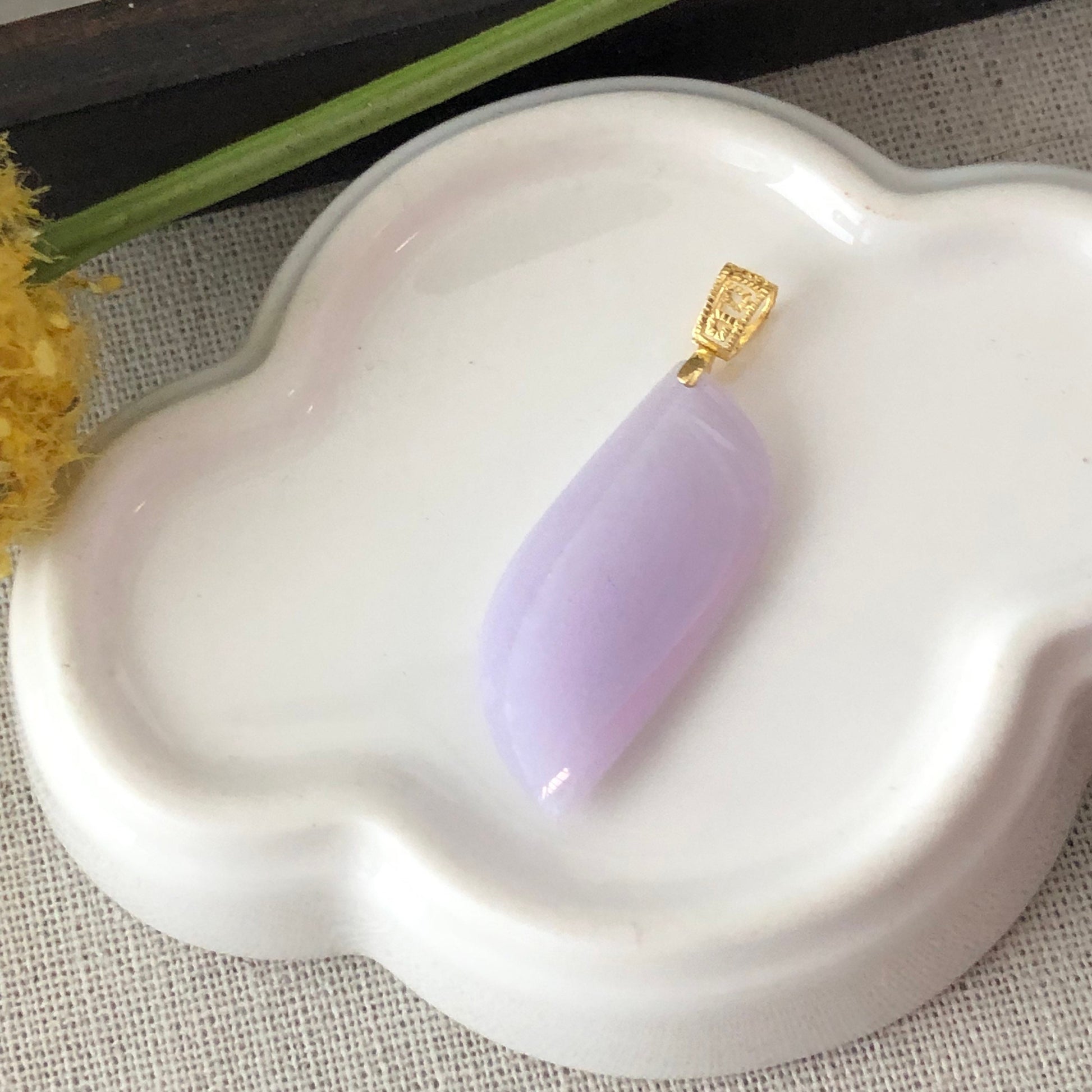 32.7 mm Jadeite Jade Lavender 3D Carved Water Swirl Pendant 18K bail