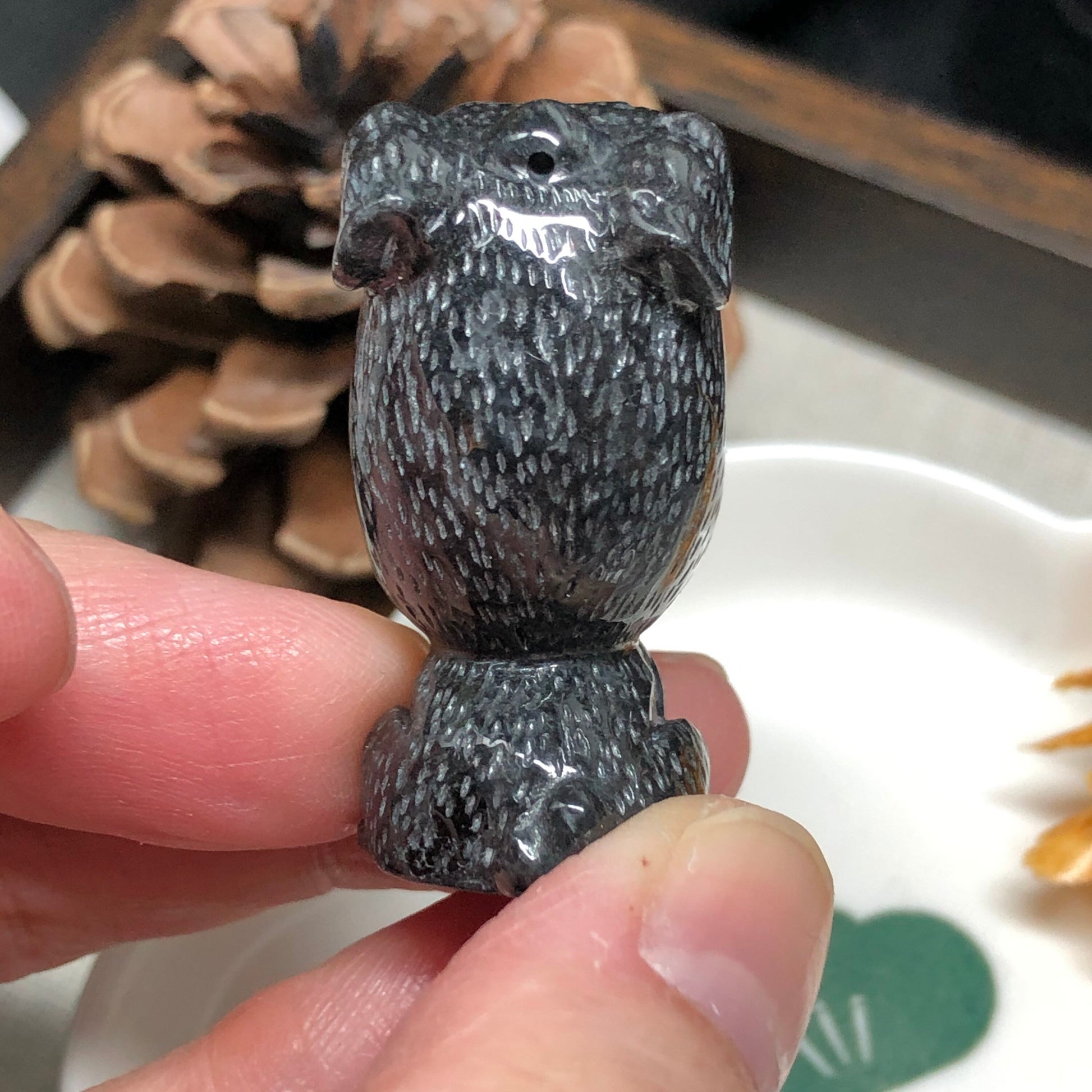 36.2 mm Certified Myanmar Grade A Jadeite Icy Wuji Grey Dog Keychain or Pendant Display Figurine