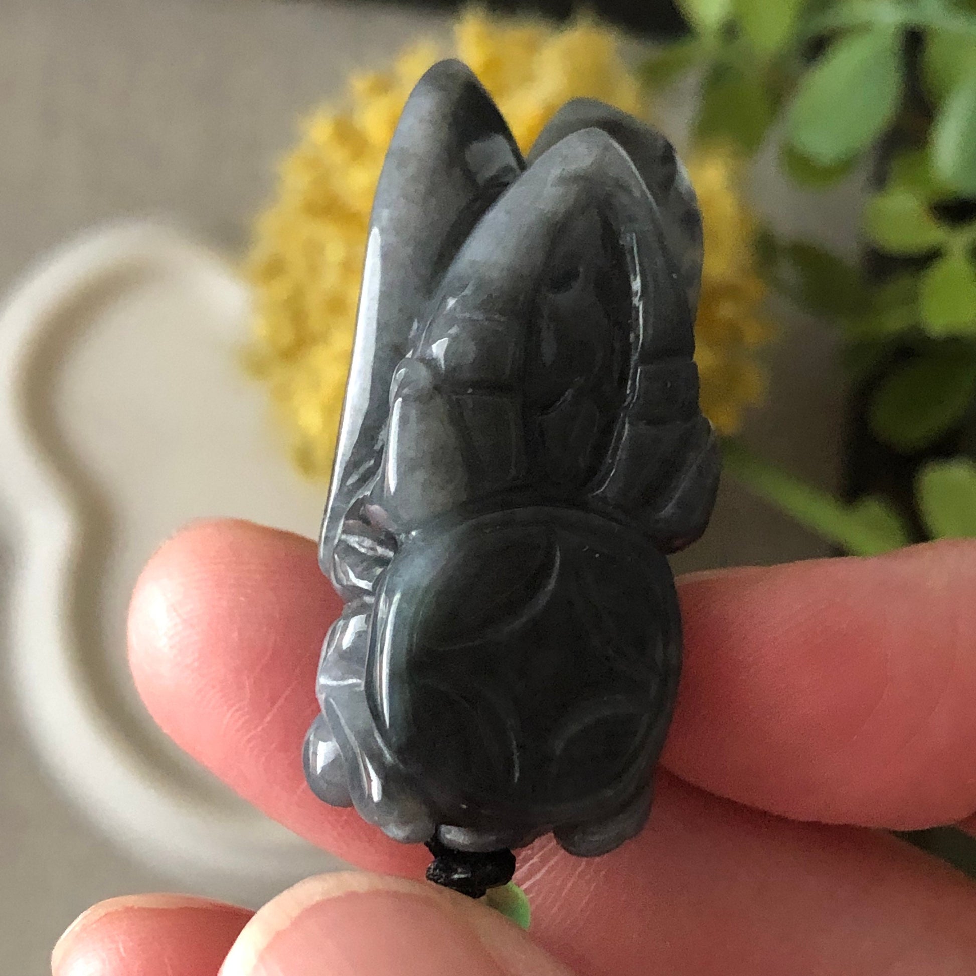 37 mm Wuji Black Jade Jadeite Carved Locust Moth Pendant