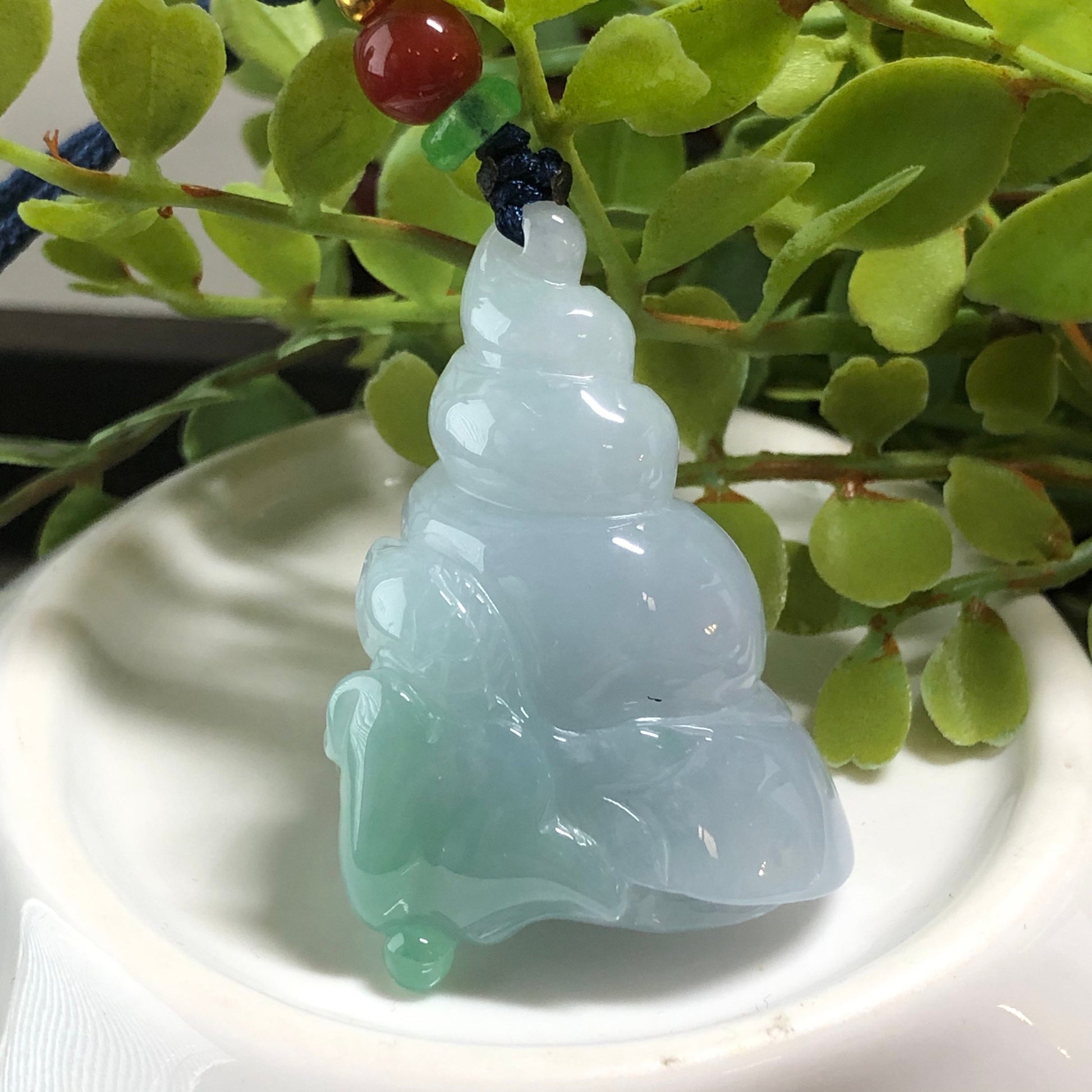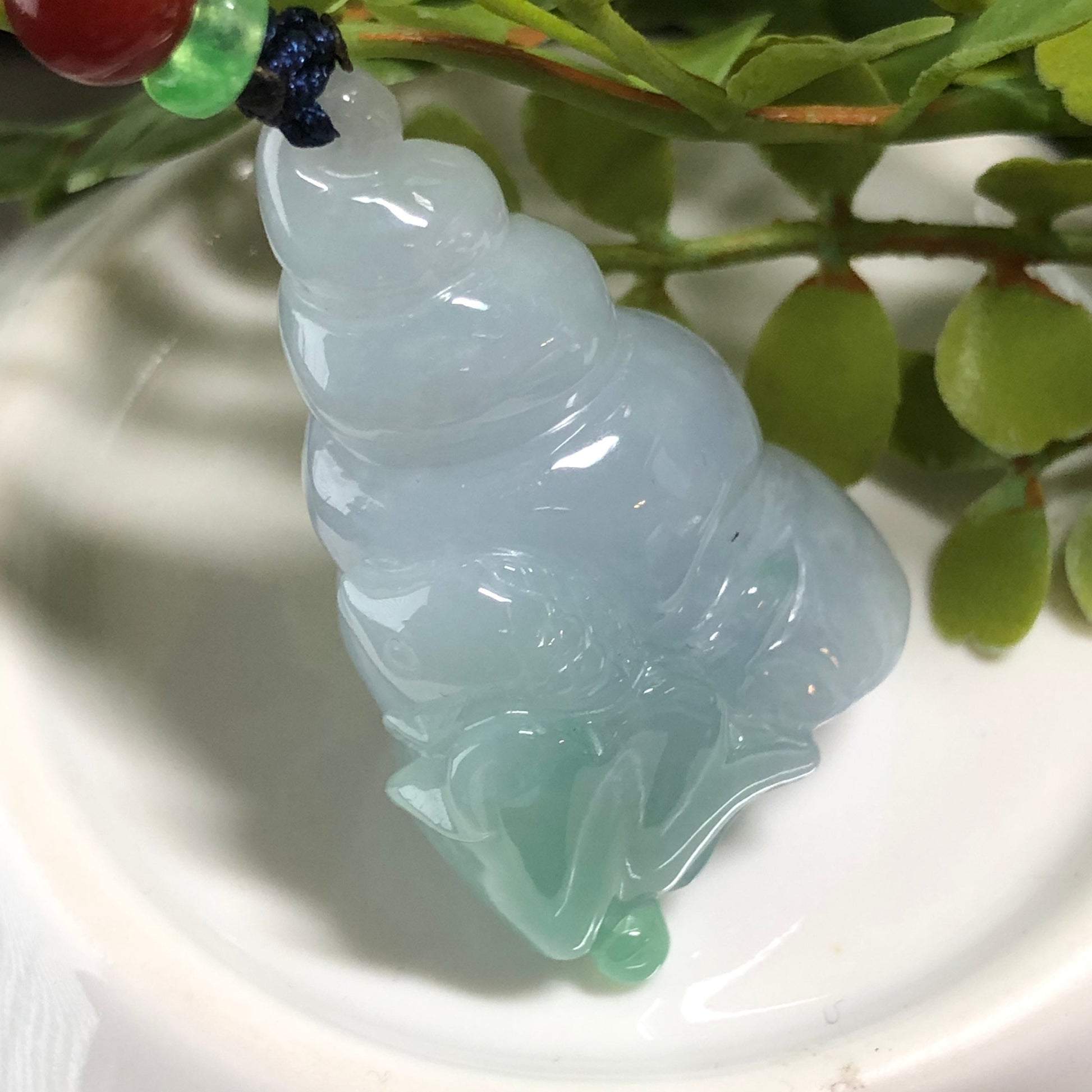 Details: 39mm Grade A Jadeite Jade Carved Moss Green Sea Shell Pendant Neck Rope Tie