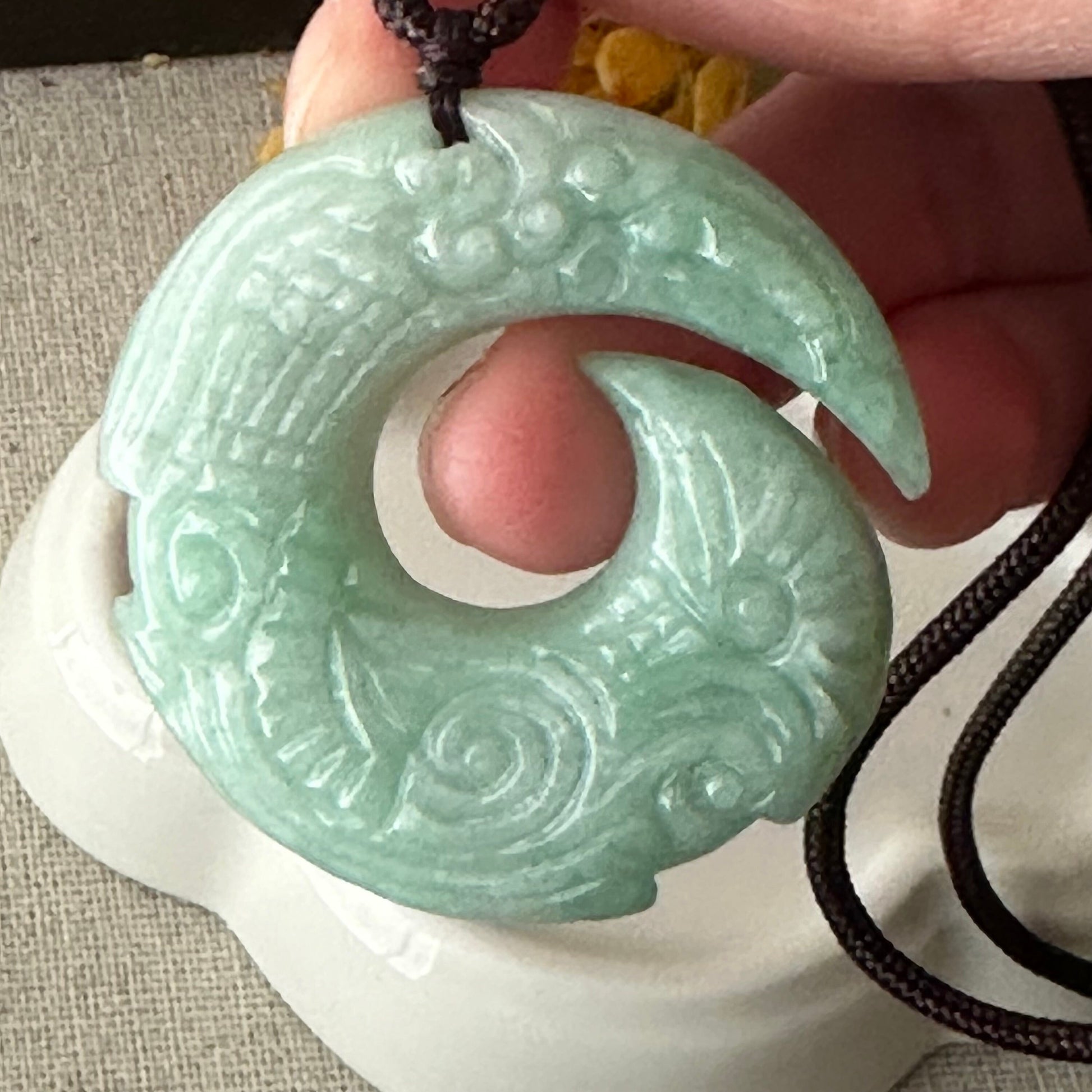 40mm Green Jadeite Jade Medallion Carved Pendant