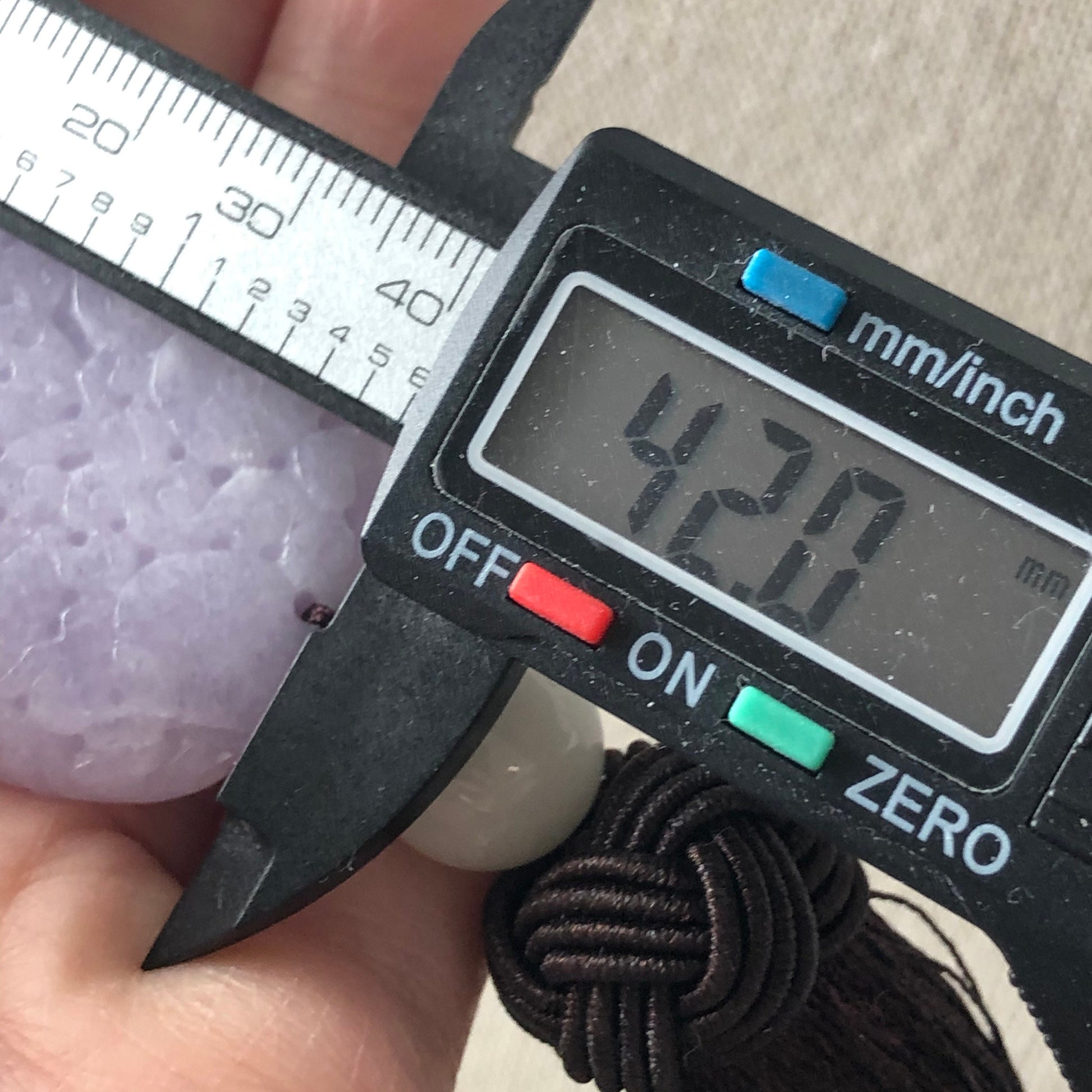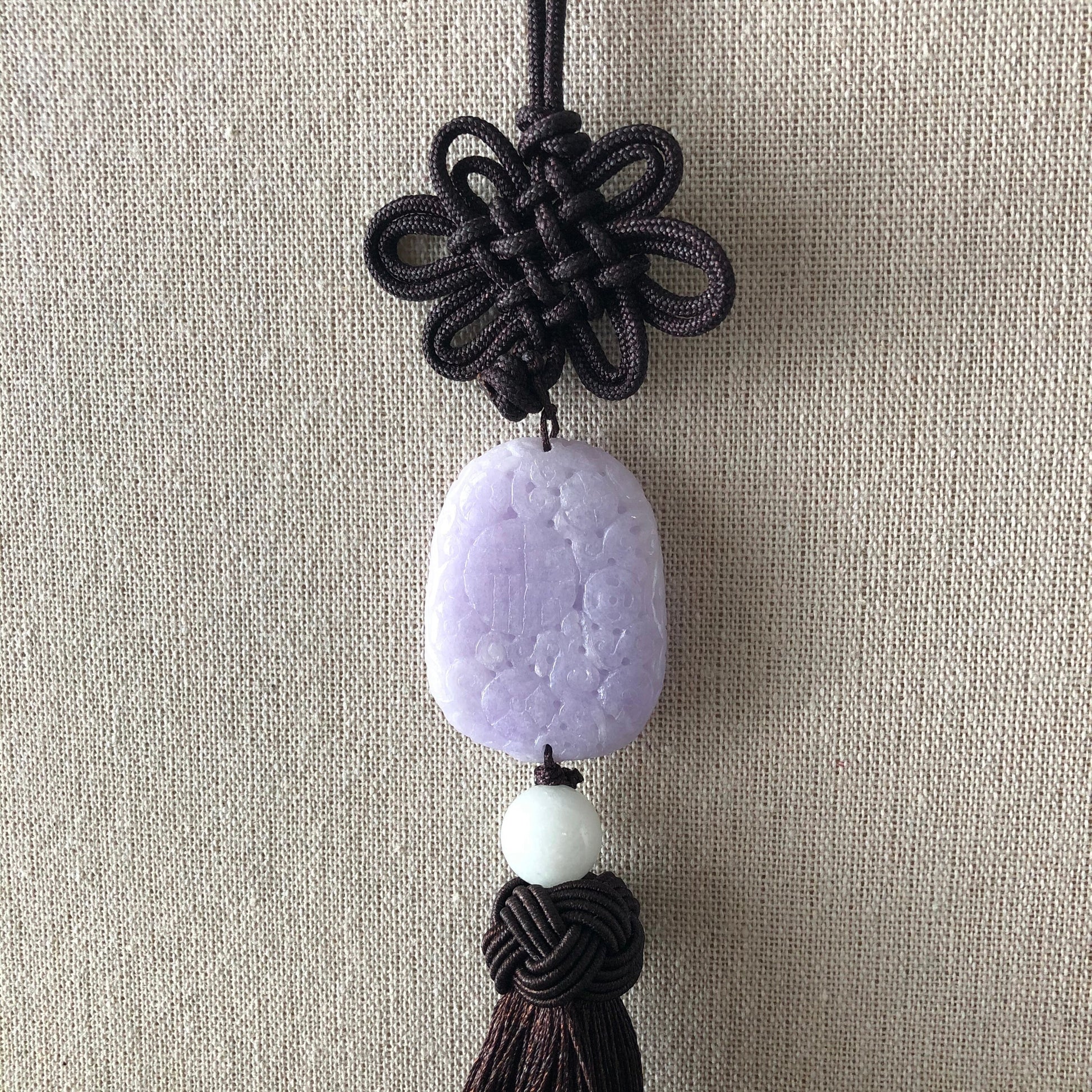 42mm Jadeite Jade Carved Asian Pattern Lavender Floral Keychain Charm Antique Look Design