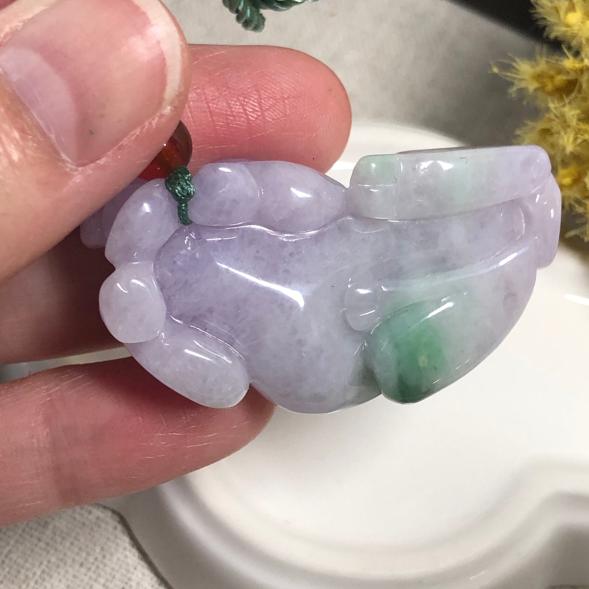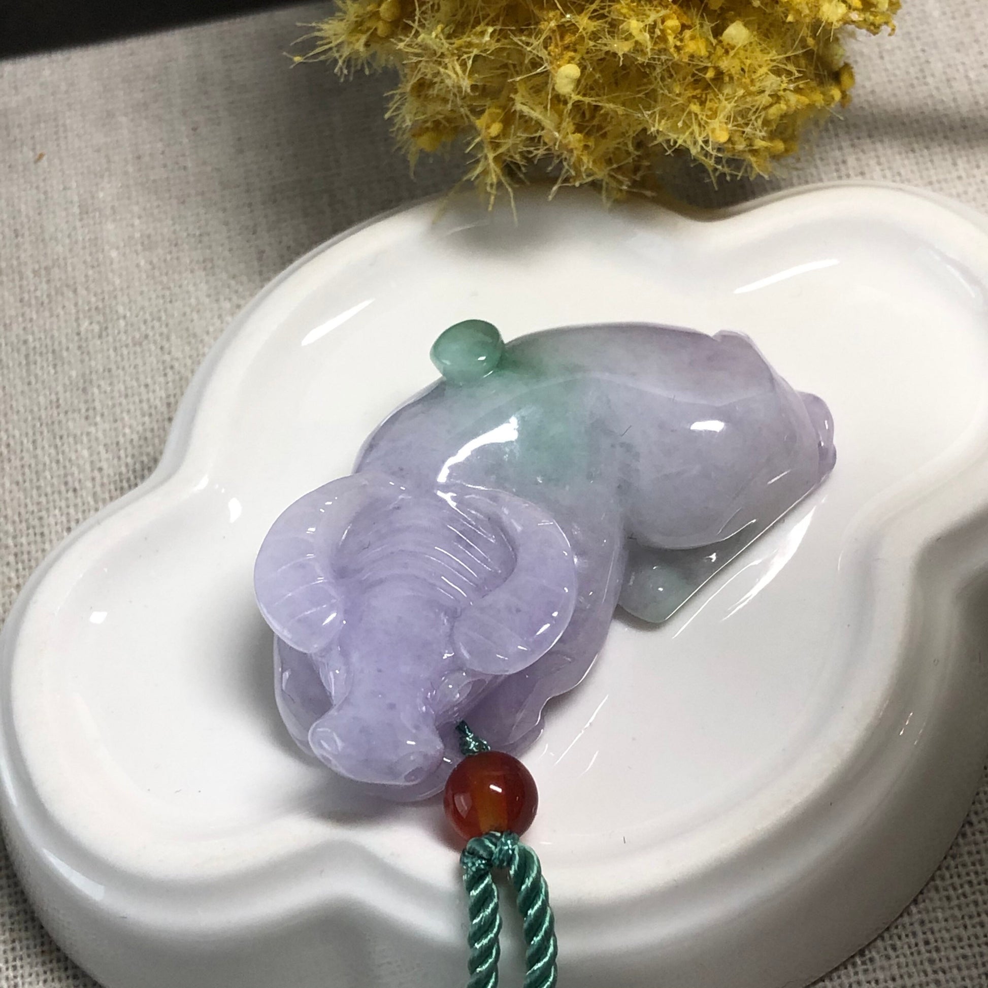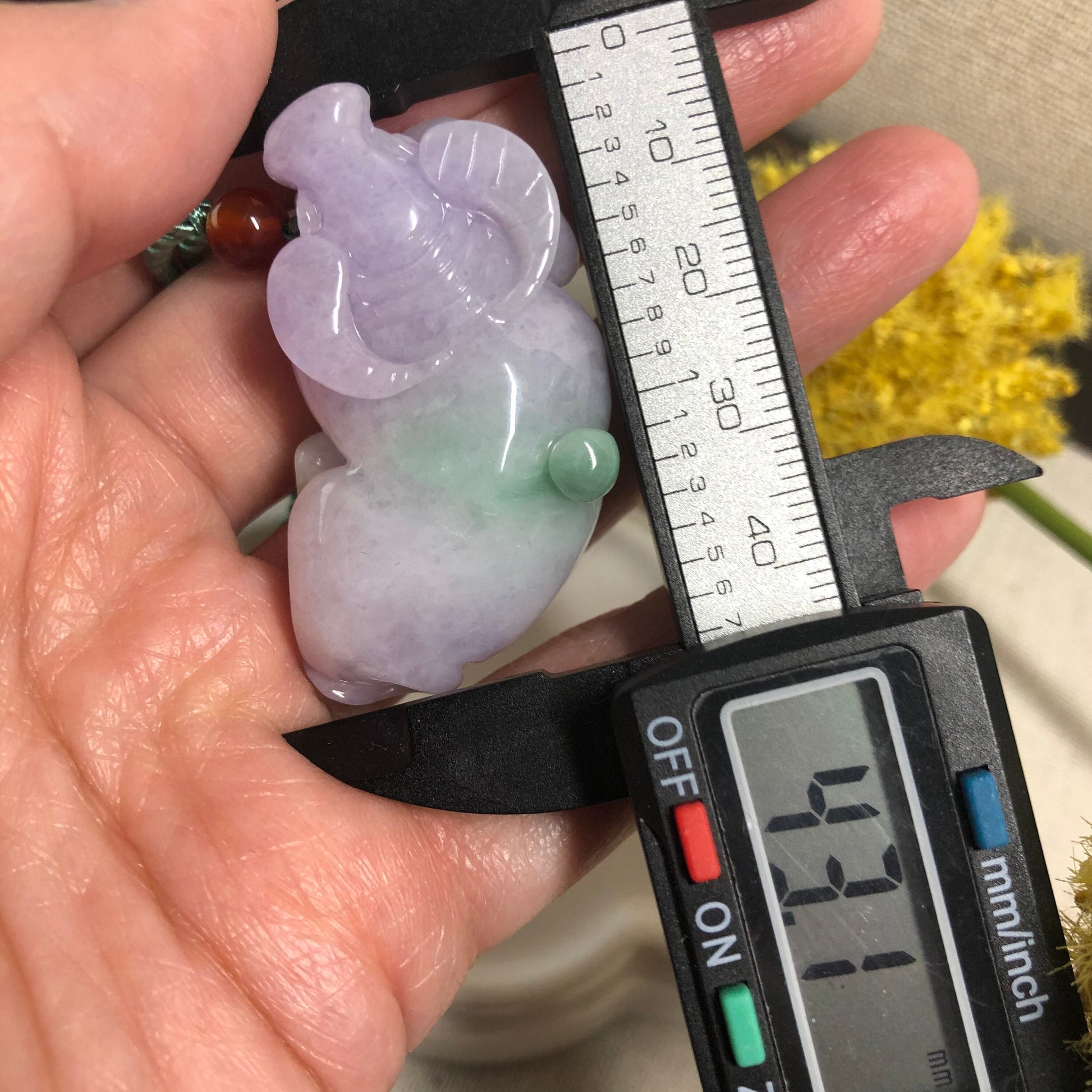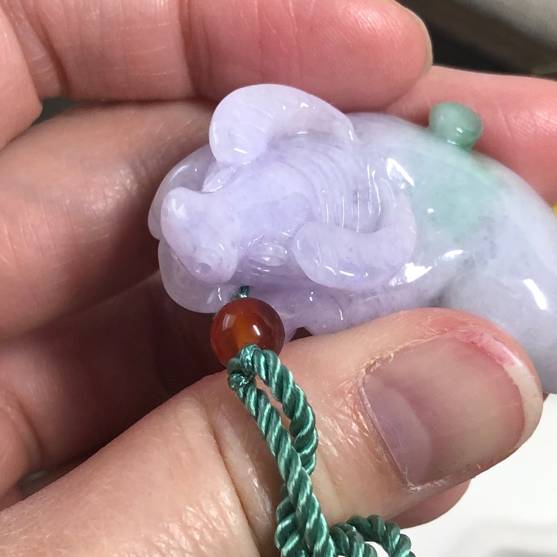43mm Certified Grade A Jadeite Jade Carved Lavender Year of the Cow 2021 Keychain or Pendant Display Figurine