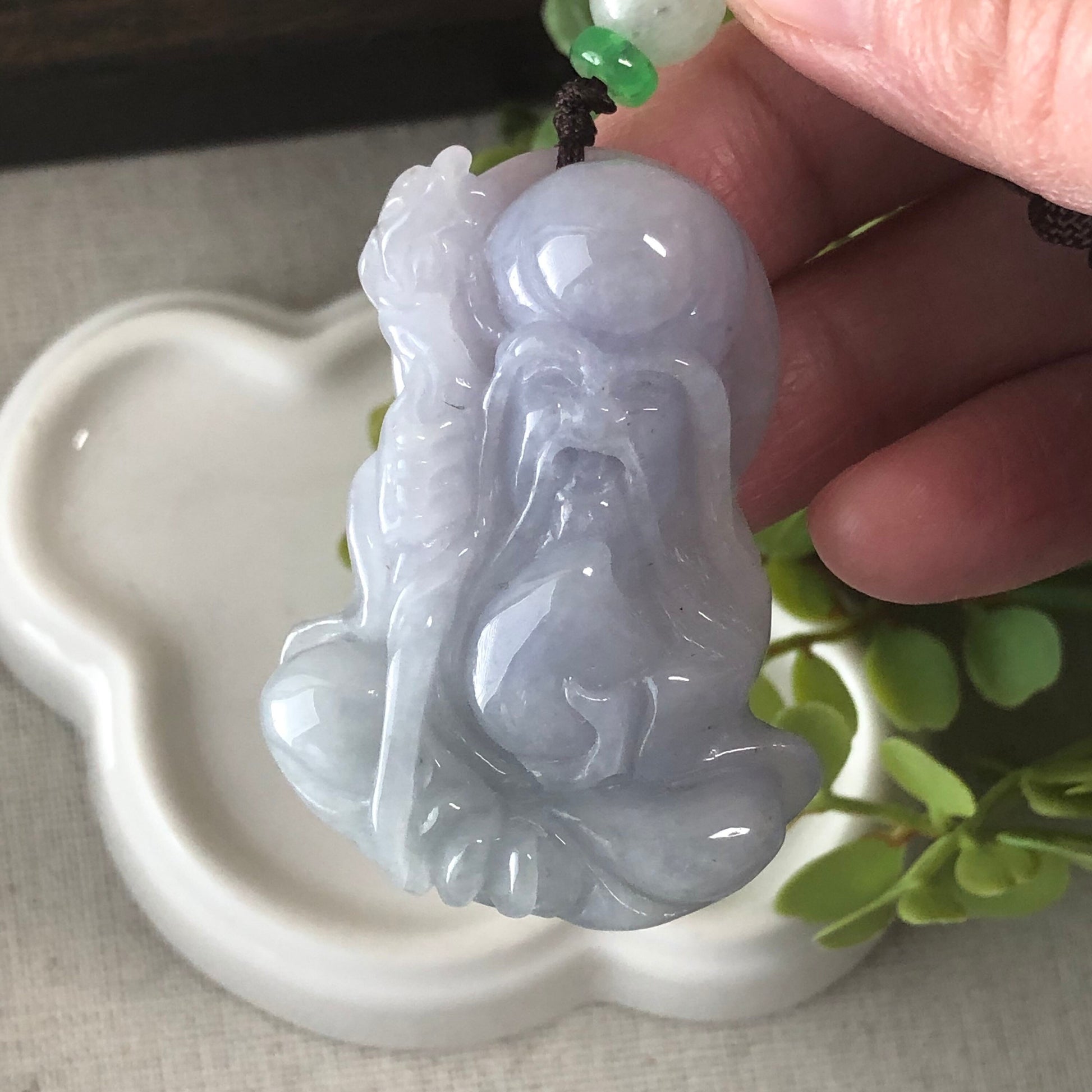 46.4mm Grade A Light Lavender Fine Longevity God Jadeite Jade Carved Pendant