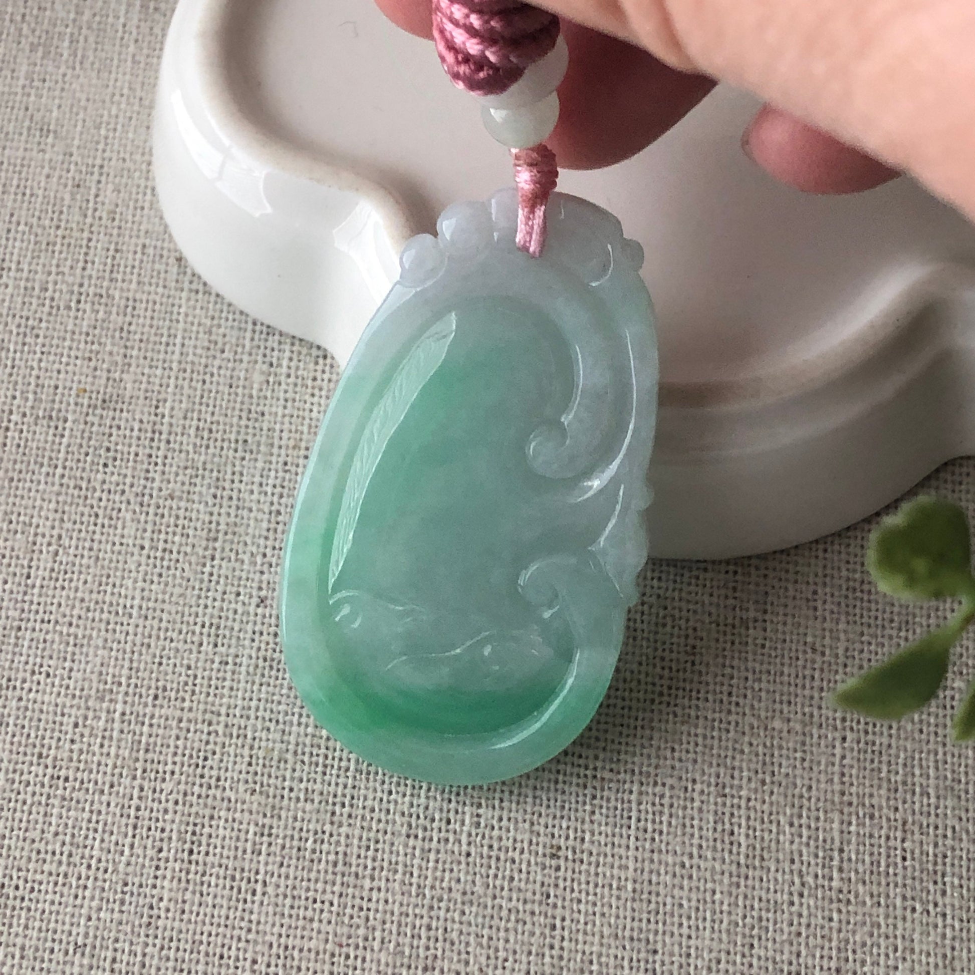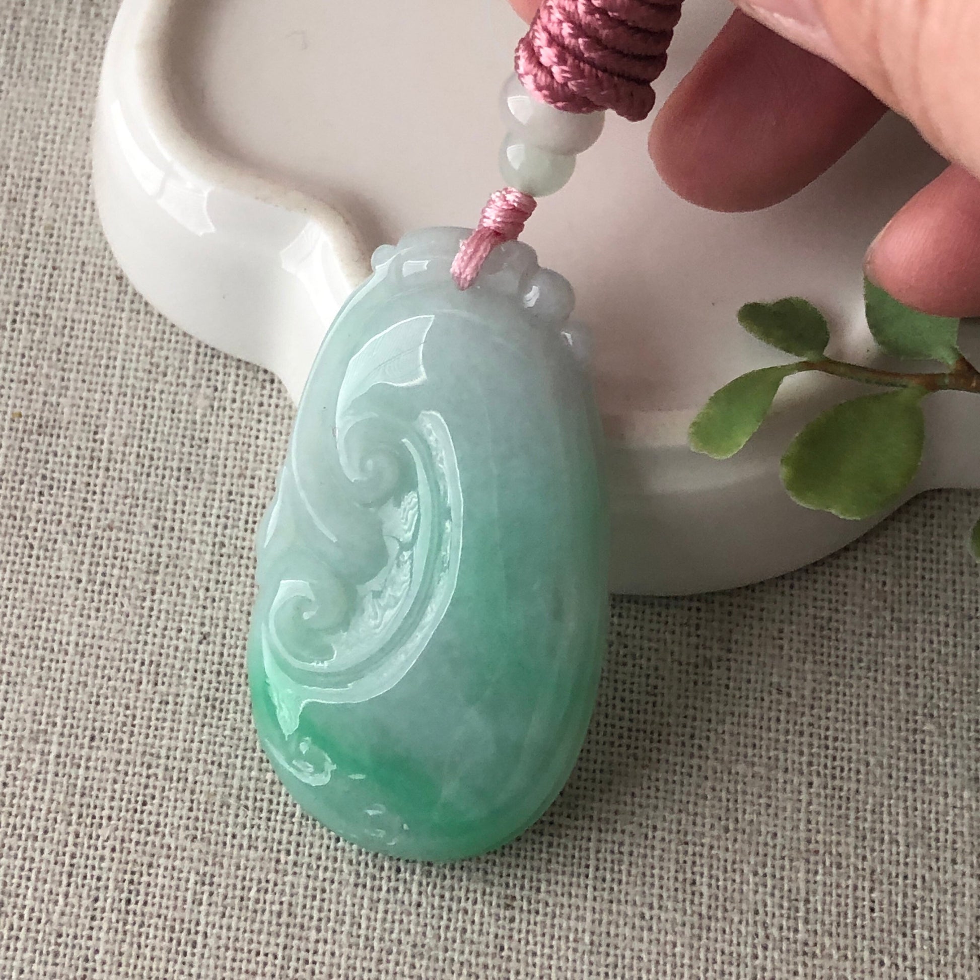 46mm Jadeite Jade Carved Green Ruyi Pendant