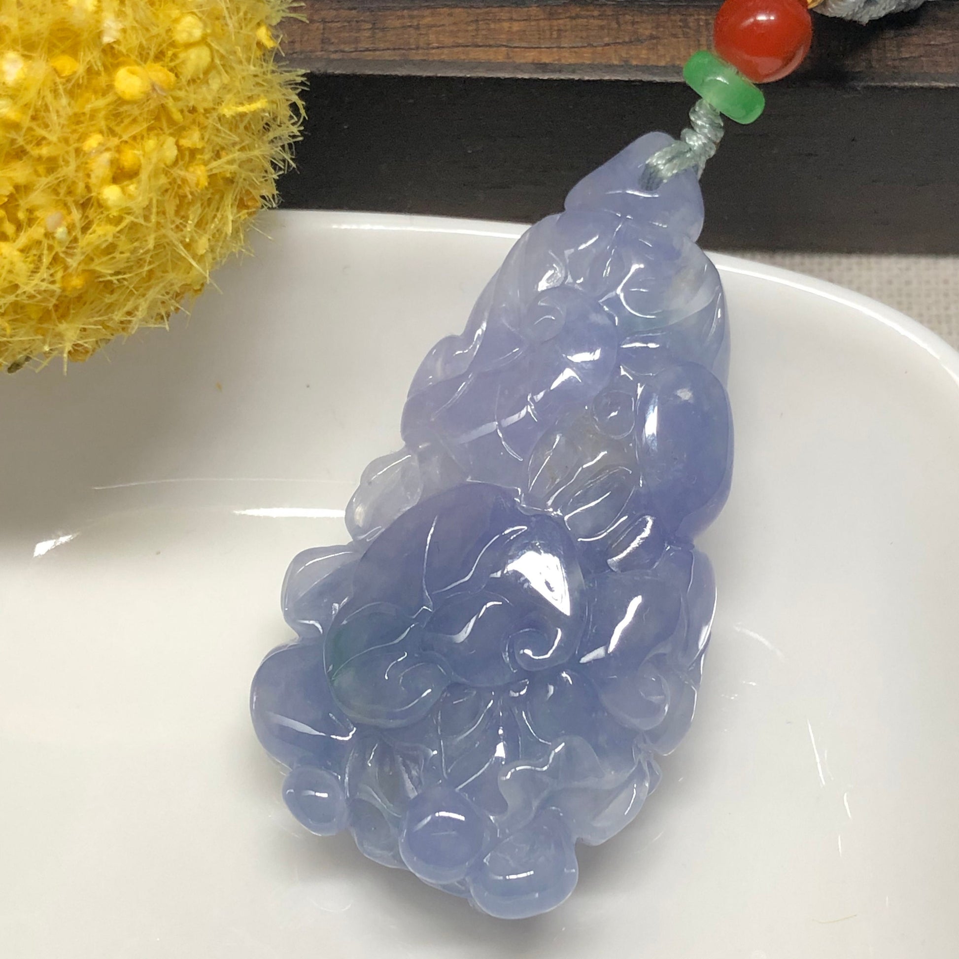 48.4mm Grade A Icy Lavender Carved Vegetable Flower Jadeite Jade Pendant