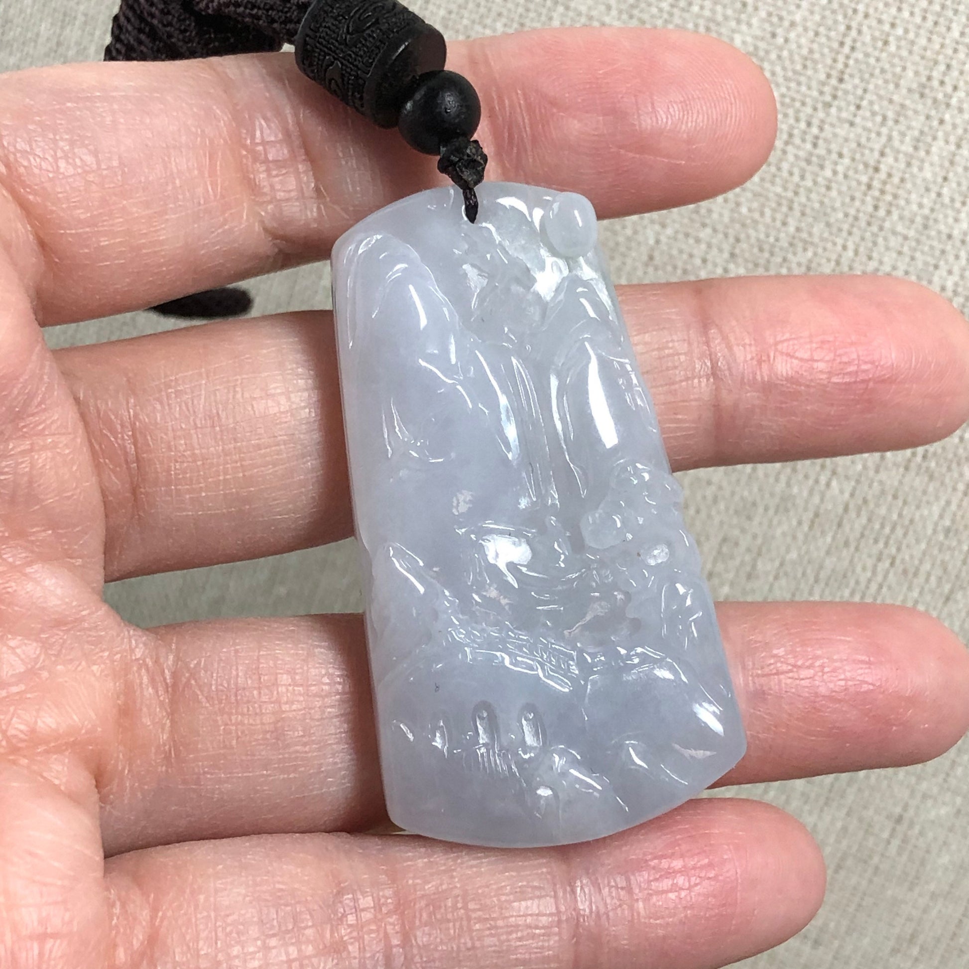 48.5mm Jadeite Jade Icy Fine Glutinous Carved Landscape Scenery Pendant Neck Rope Tie