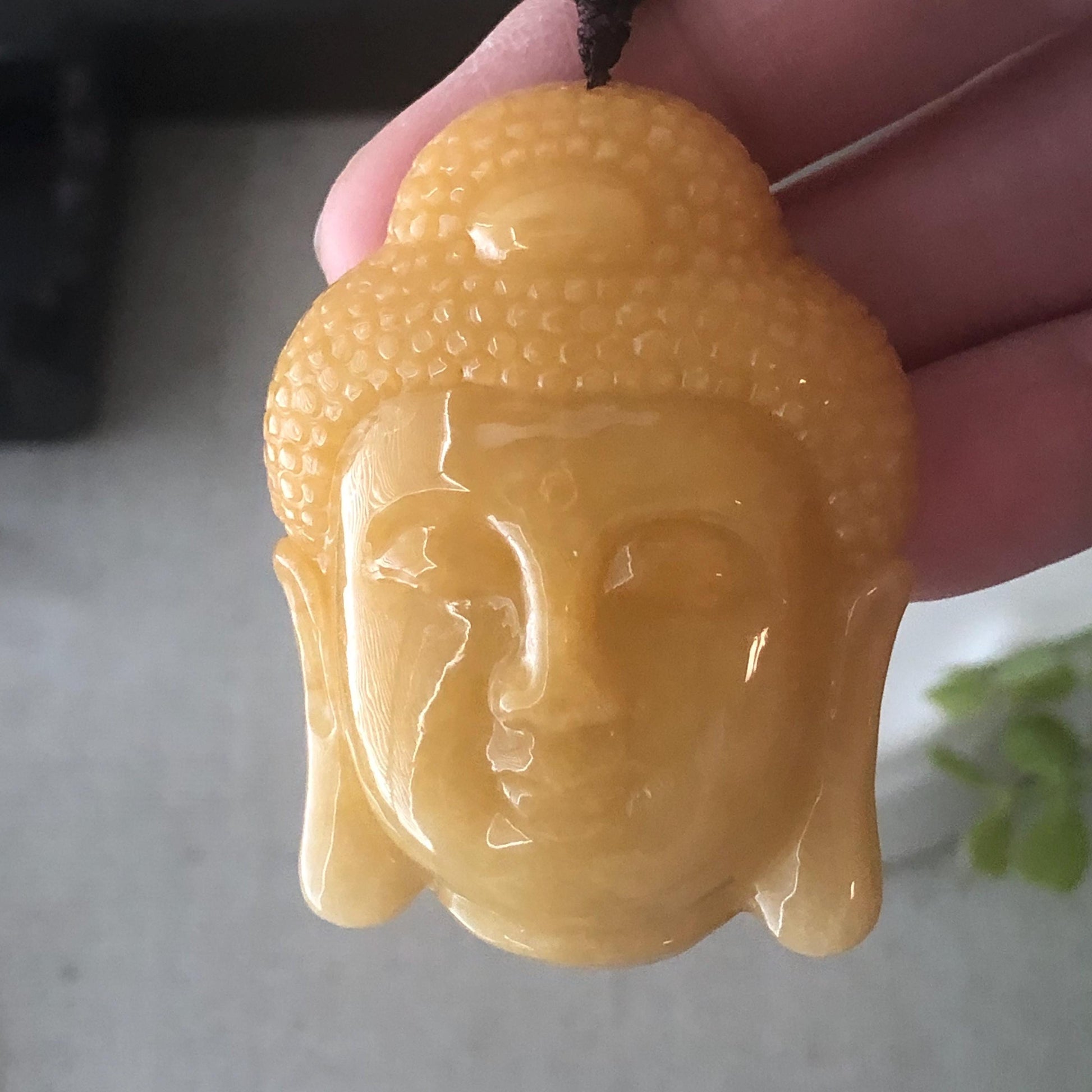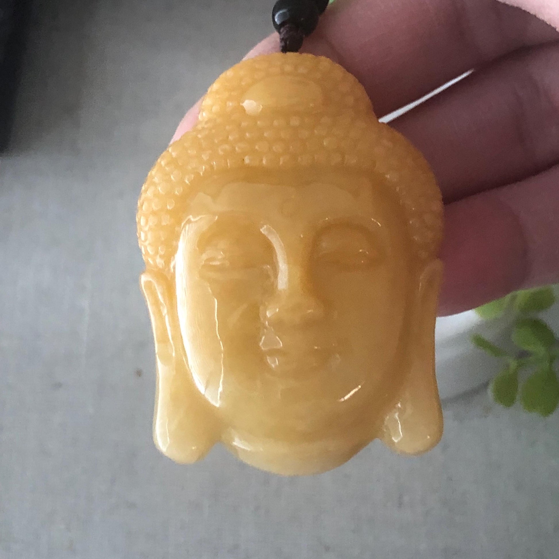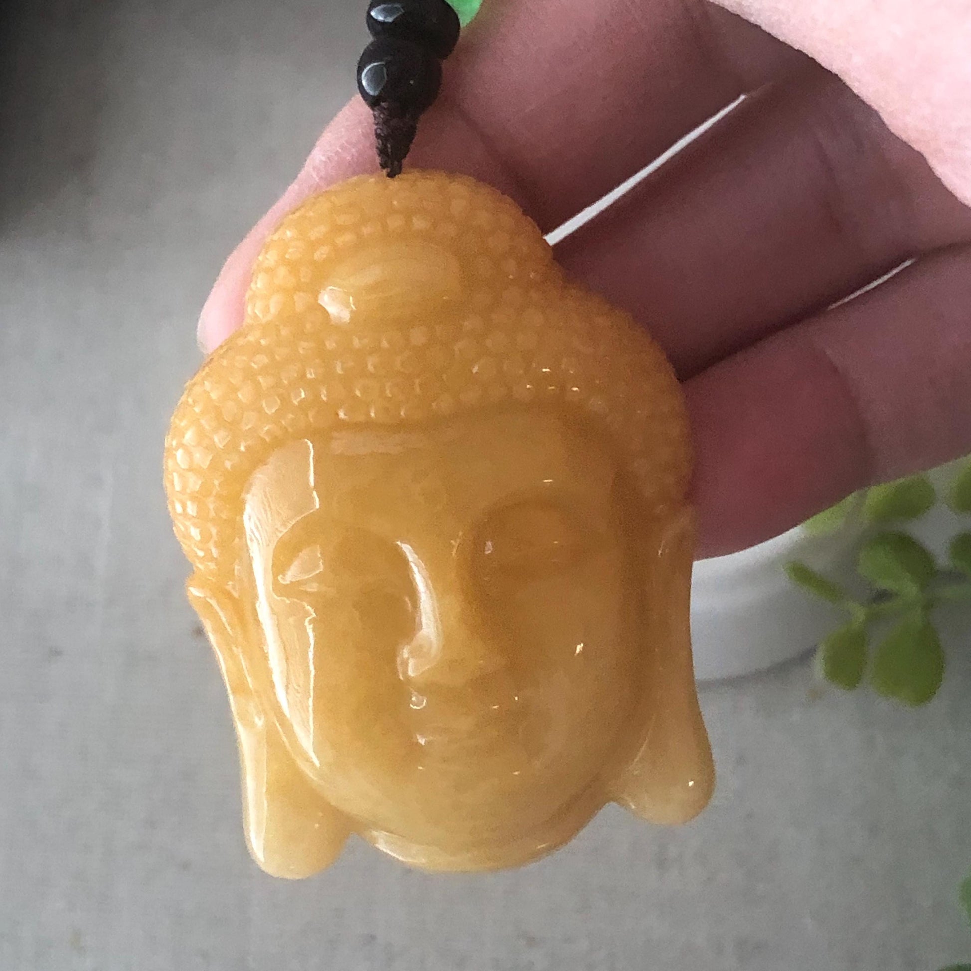 48 mm Yellow Brown Jade Jadeite Guanyin Pendant