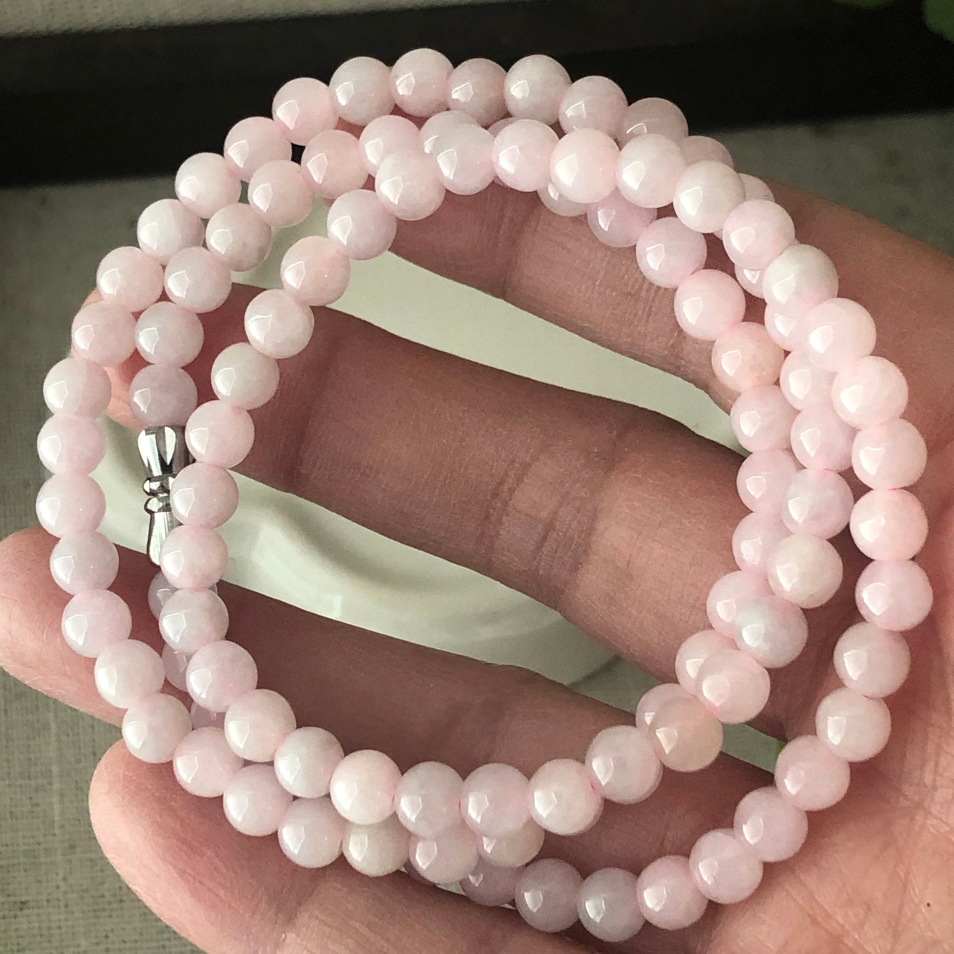 5.3mm Light Pink Jadeite Jade Bead Bracelet Necklace