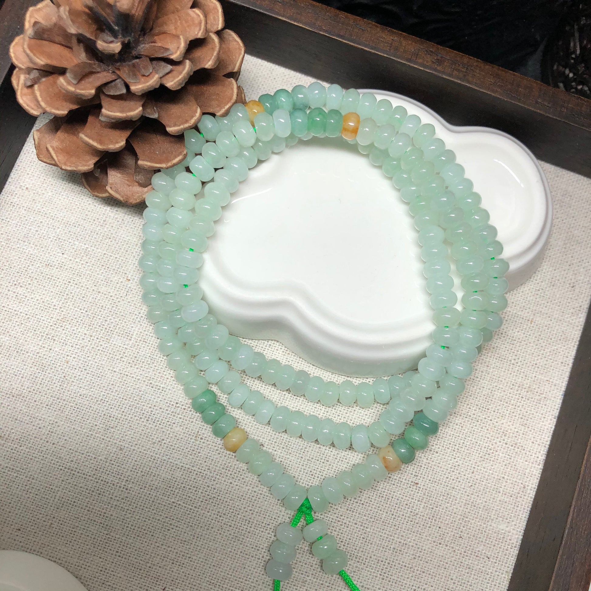 5.6 mm Grade A Icy Glutinous Light Green Jadeite Jade Flat Bead Bracelet