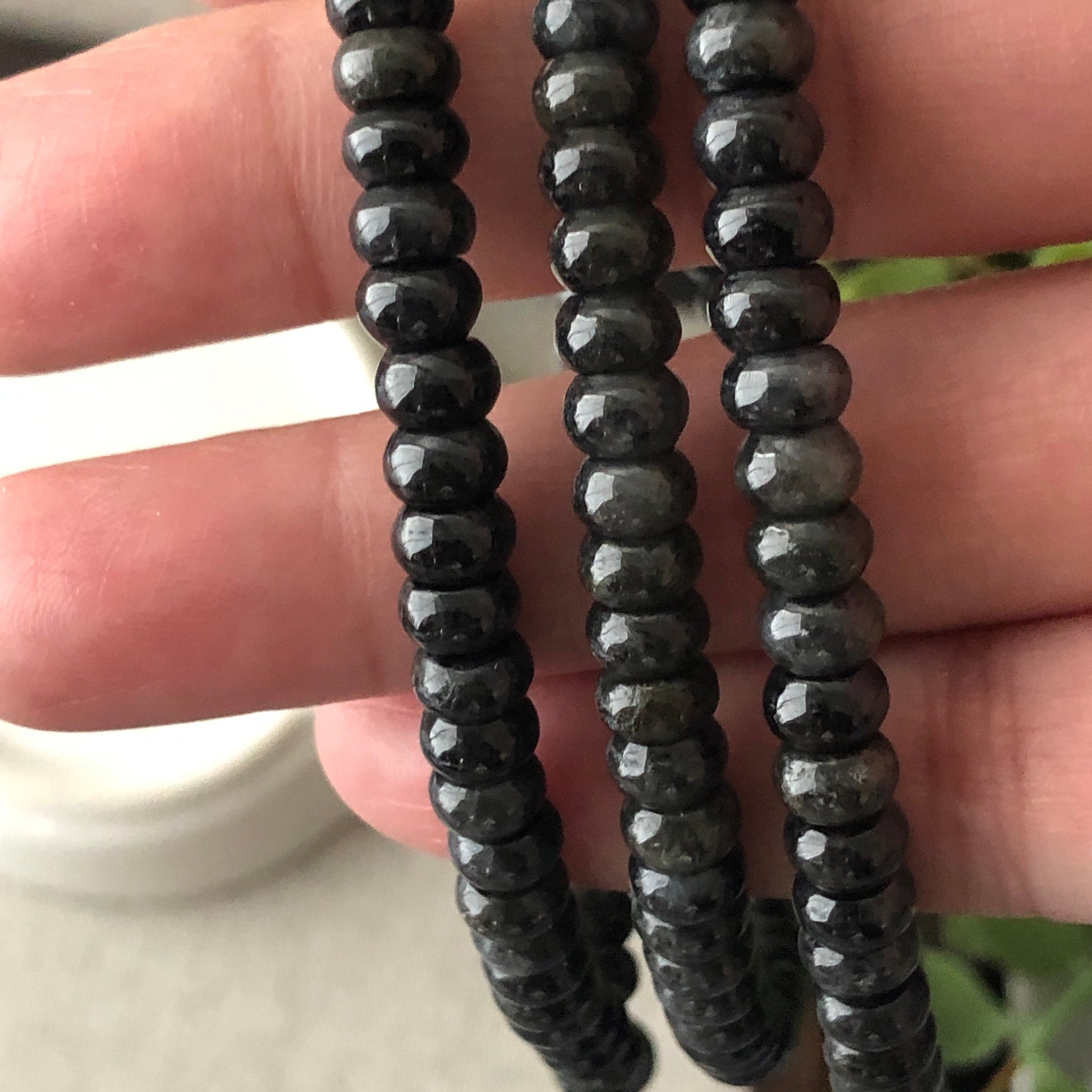 5.8mm Wuji Black Grey Jadeite Jade Flat Round Bead Bracelet Necklace