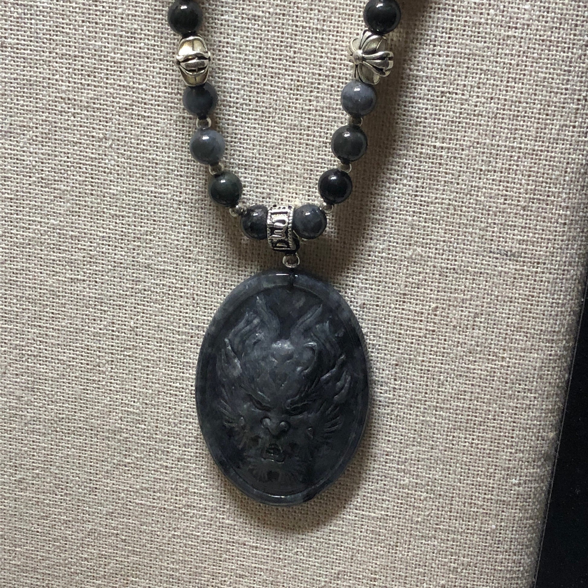50 mm Icy Wuji Jadeite Jade Carved Dragon Head Pendant