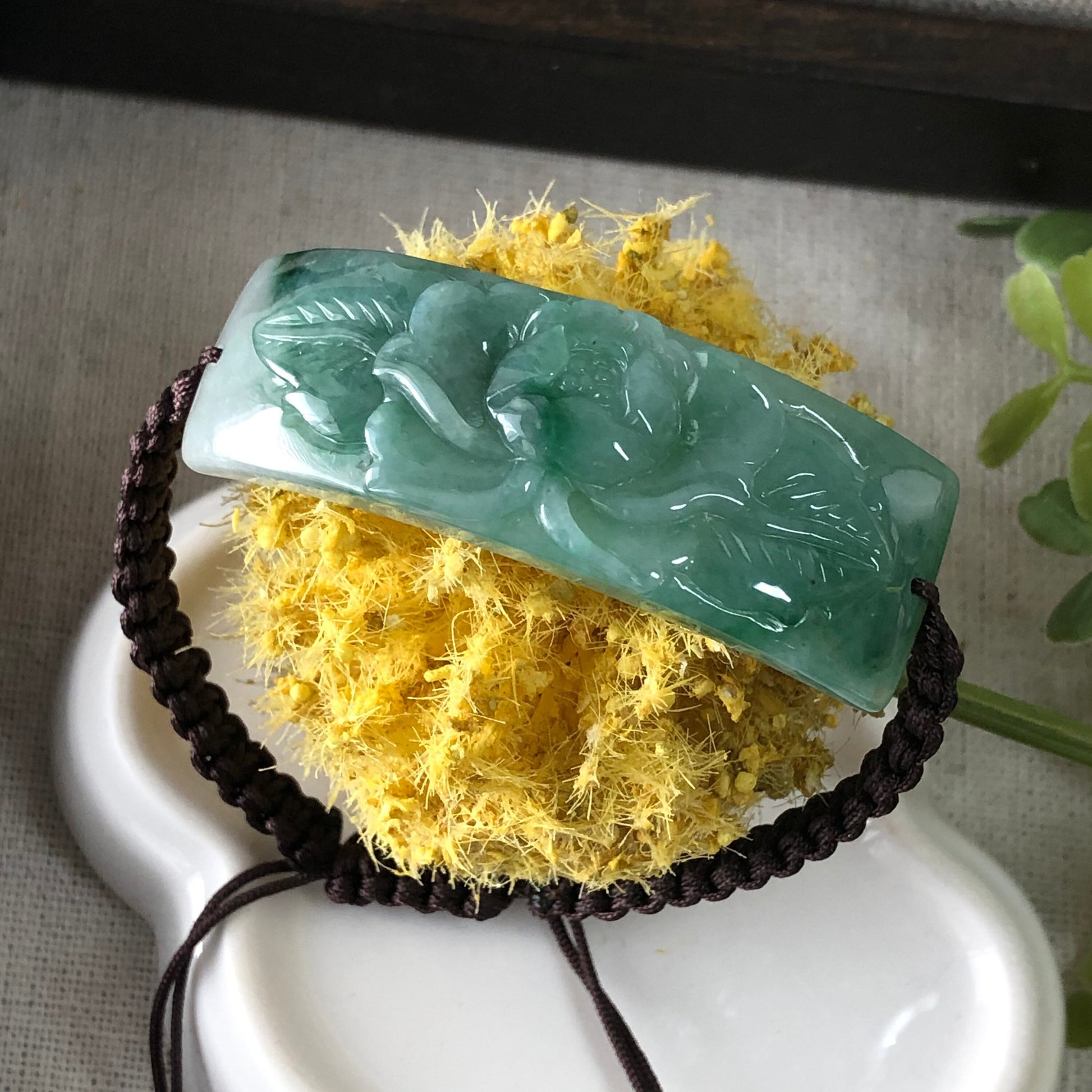 51.7mm Grade A Green Carved Flower Jadeite Jade Rope Bracelet