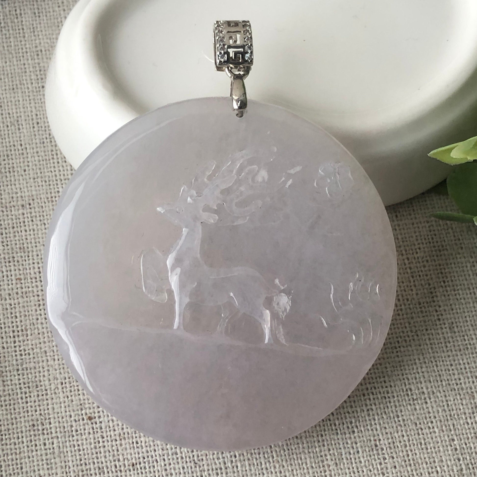 ✅ 51 mm Icy Jadeite Jade Carved Deer Pendant