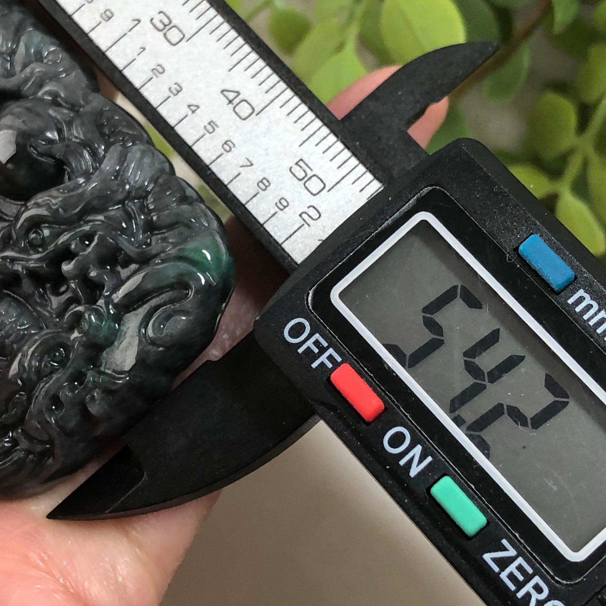 54.2mm Jadeite Jade Wuji Green Carved 9 Dragons Pendant Neck Rope Tie