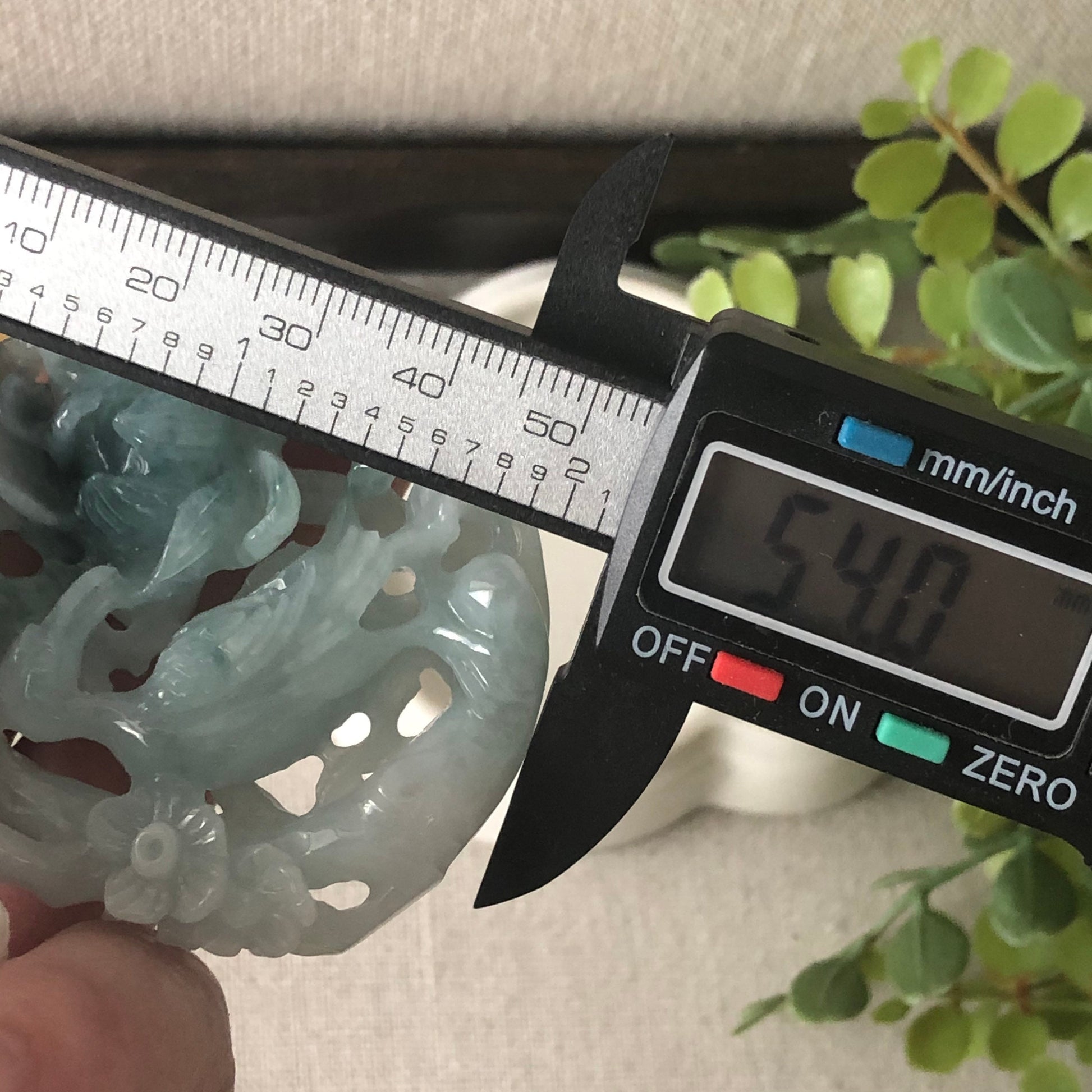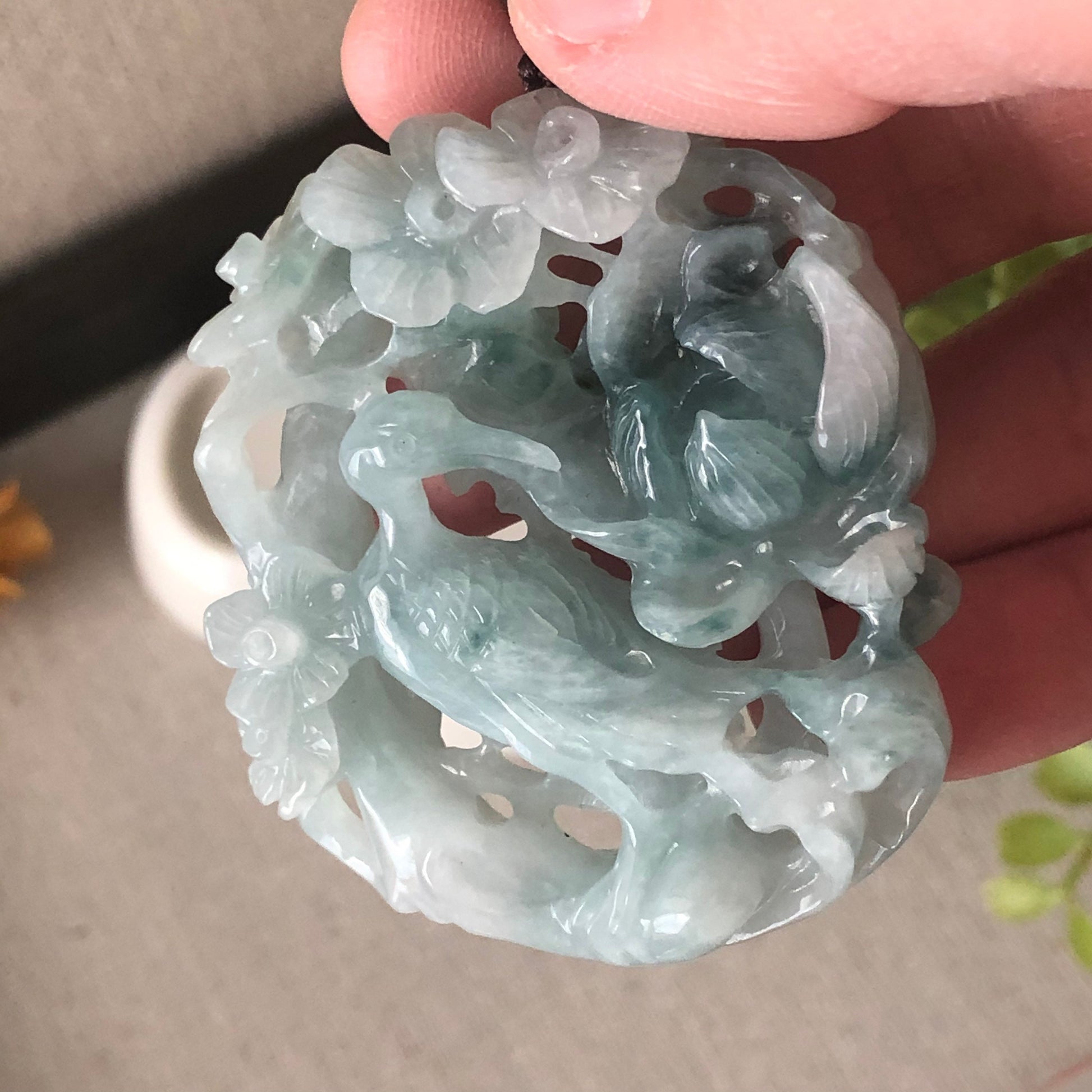 54mm Jadeite Jade Green 3D Carved Bird of Paradise Flowers Pendant RARE