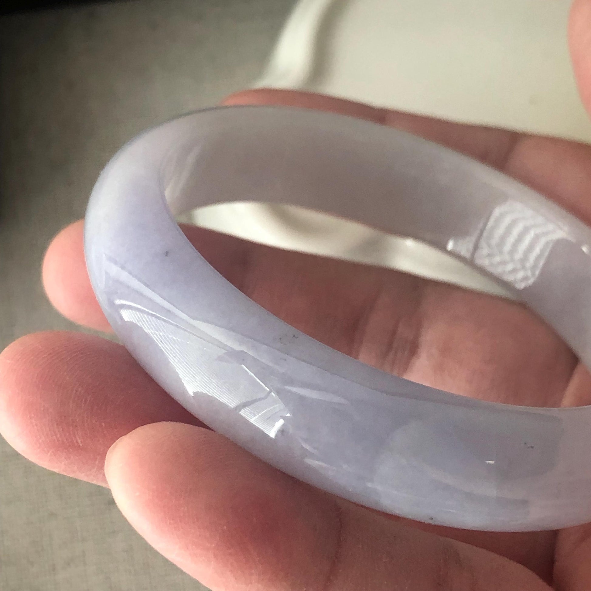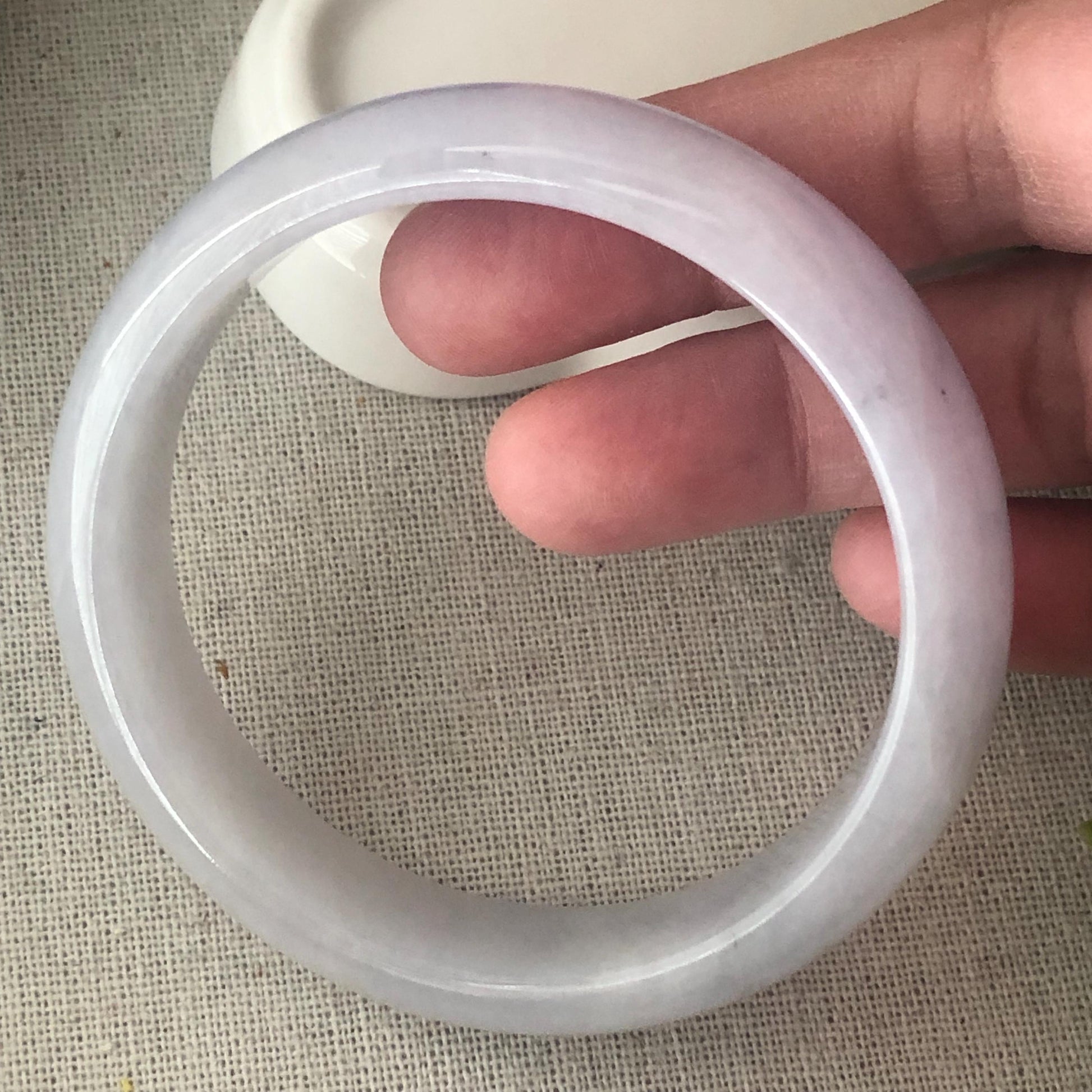 ✅ 55.5 mm Icy Light Lavender Wuji Float Flowers Jadeite Jade D-Shaped Bangle