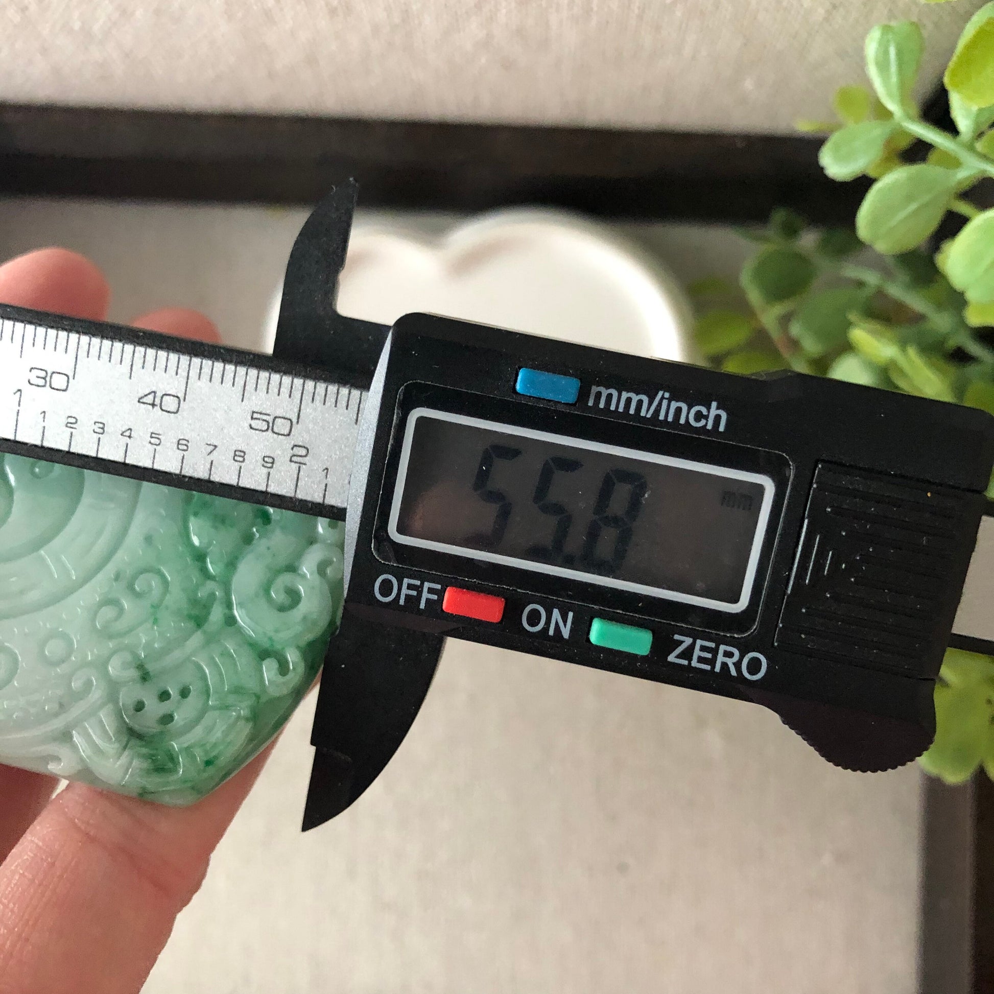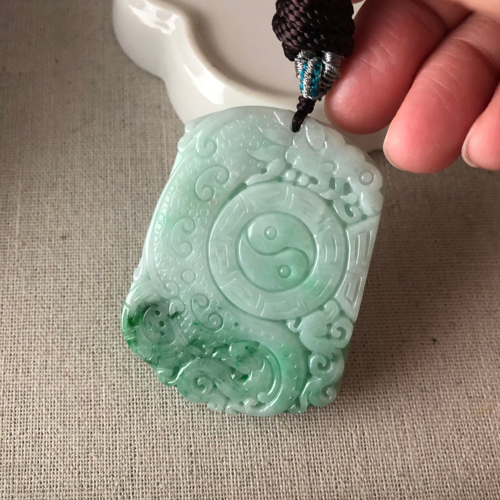 55.8mm Jadeite Jade Green Float Carved Yin Yang Asian Characters Pendant