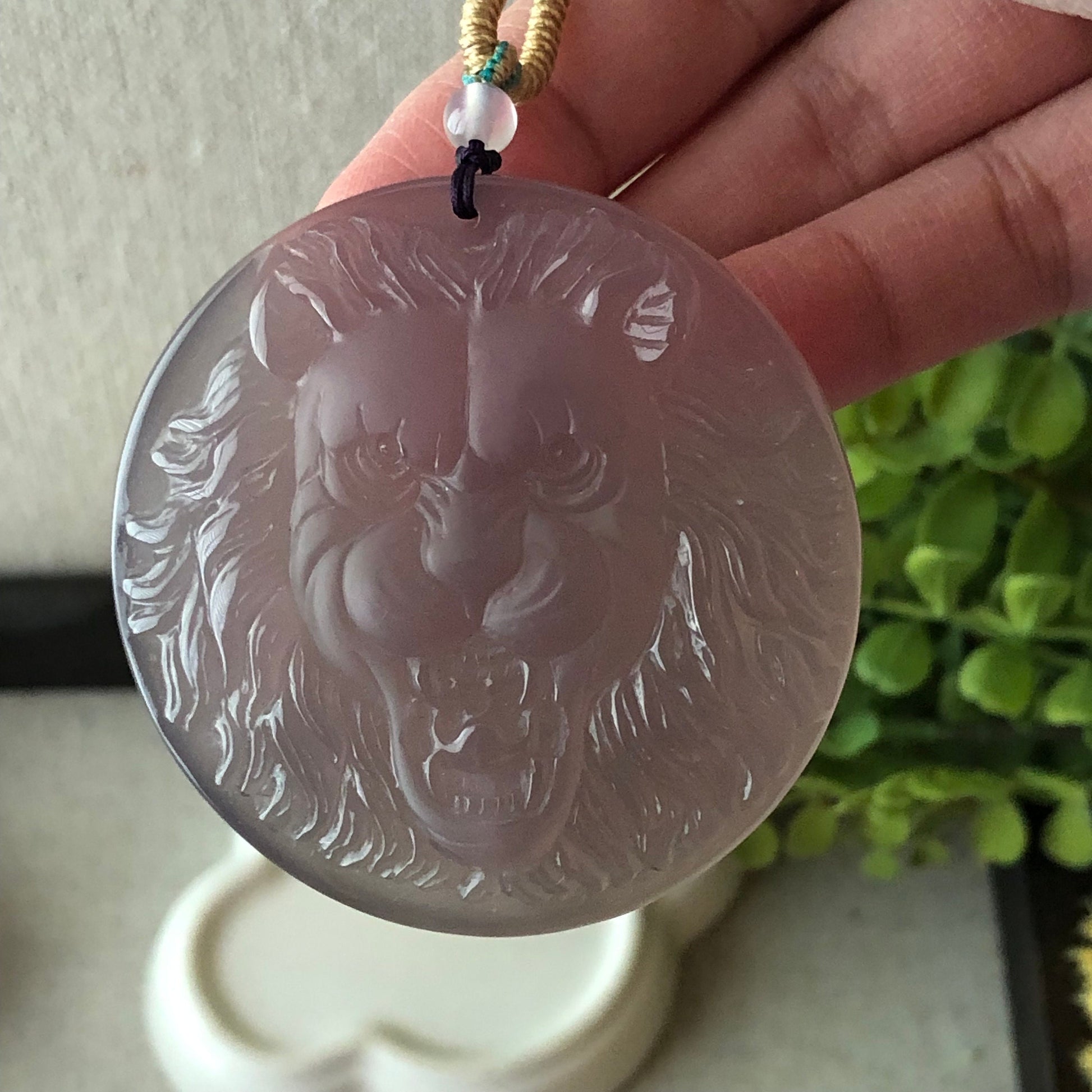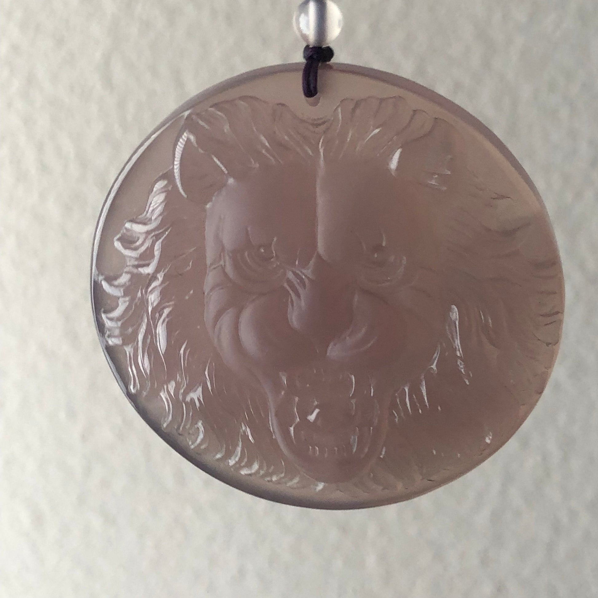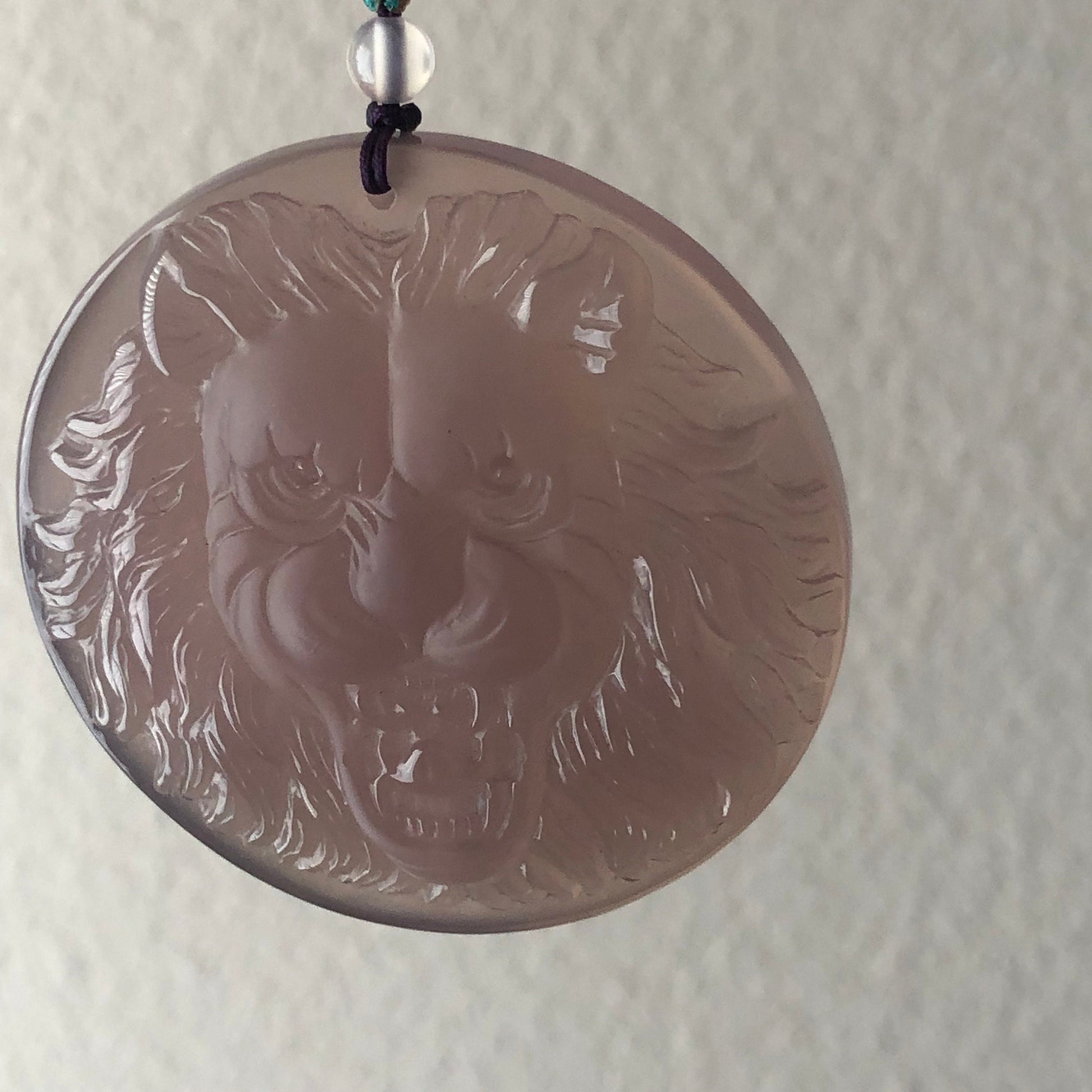 55 mm High Quality Agate Carved Lavender Lion Pendant