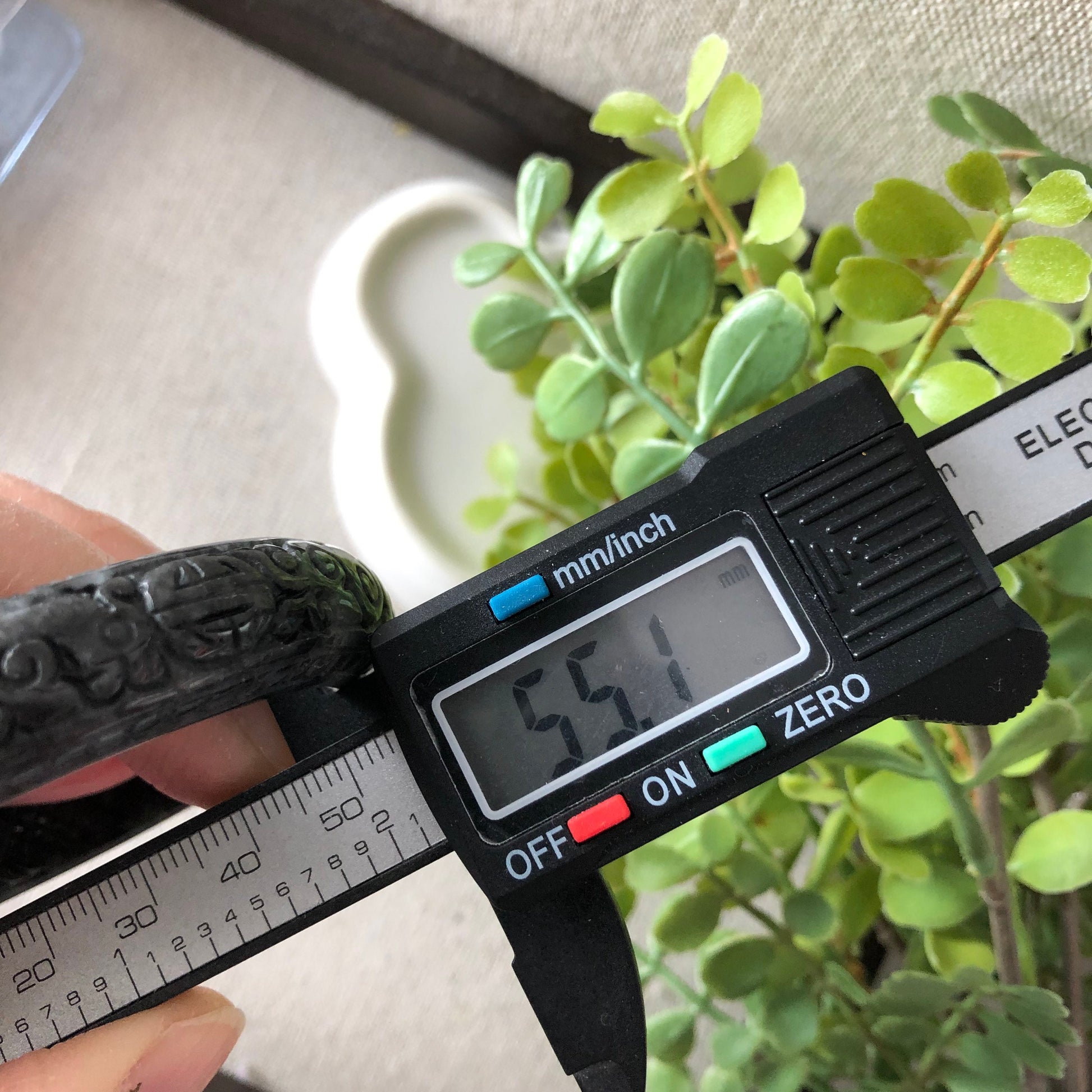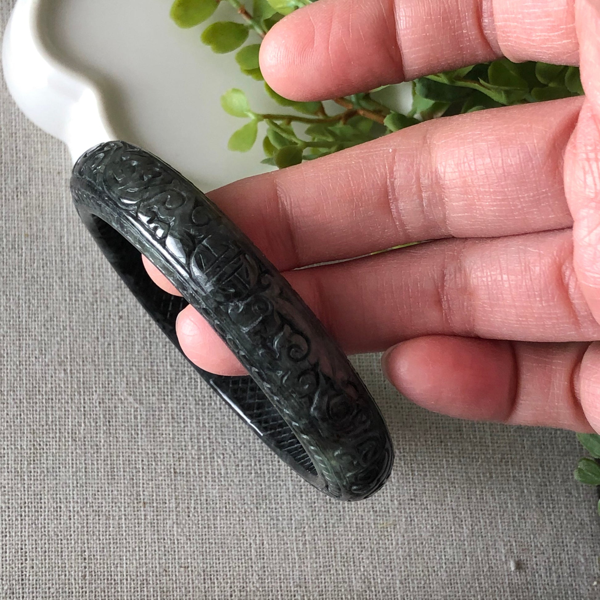 55mm Jadeite Jade Wuji Carved Black Bangle