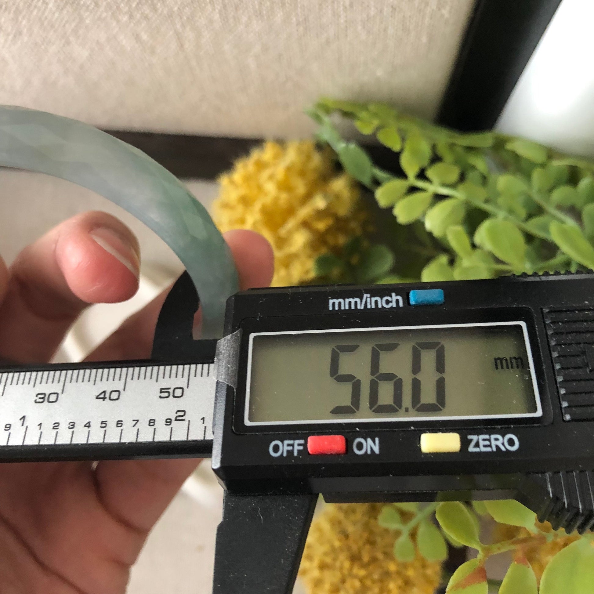 ✅ 56mm Jadeite Jade Icy earthy green D Shaped carved Diamond cut Bangle