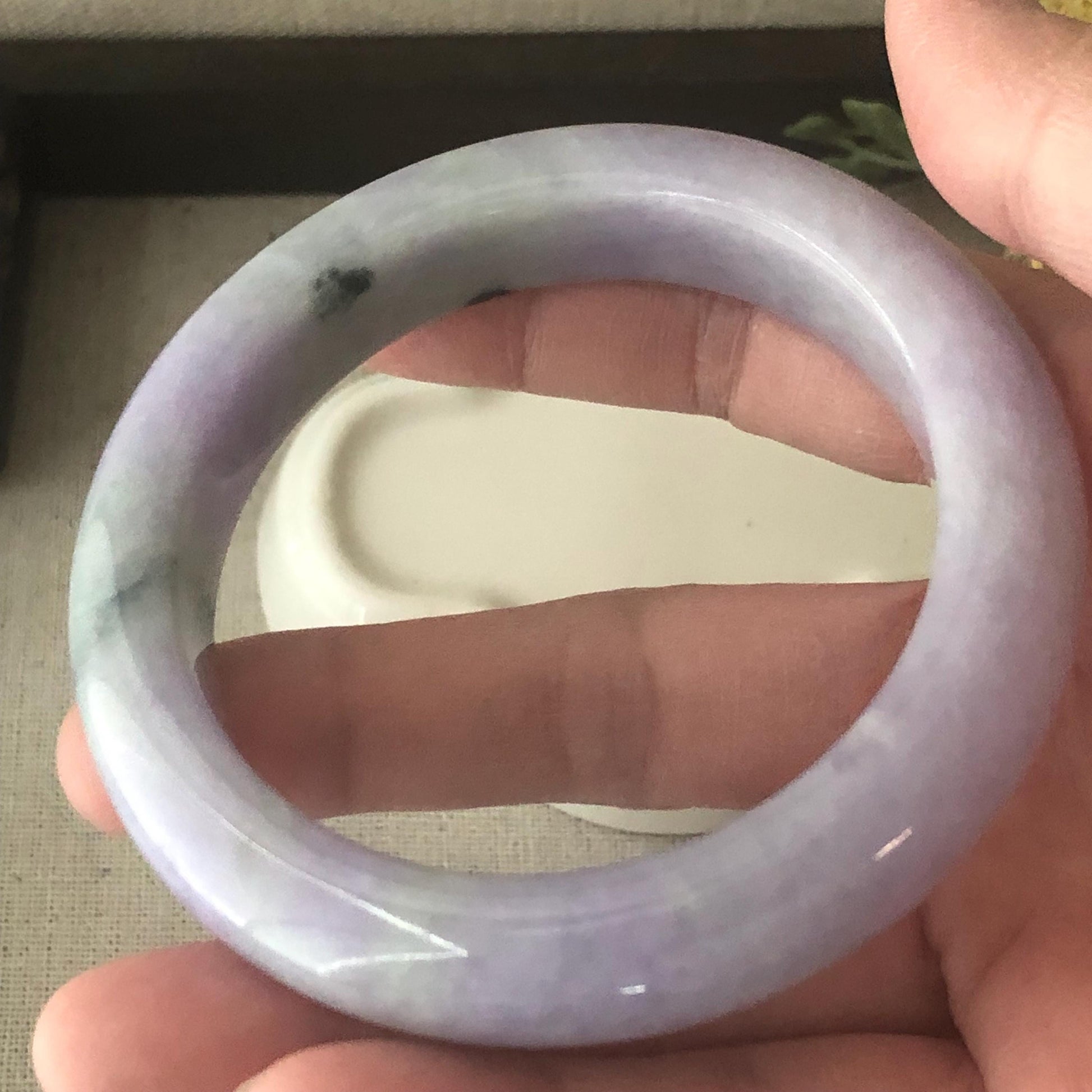 ✅ Comments: Photos cannot depict this beautiful 😍 bangle. It has more of a blue lavender tone with a touch of green float flowers. Item looks better than photos. All natural texture.