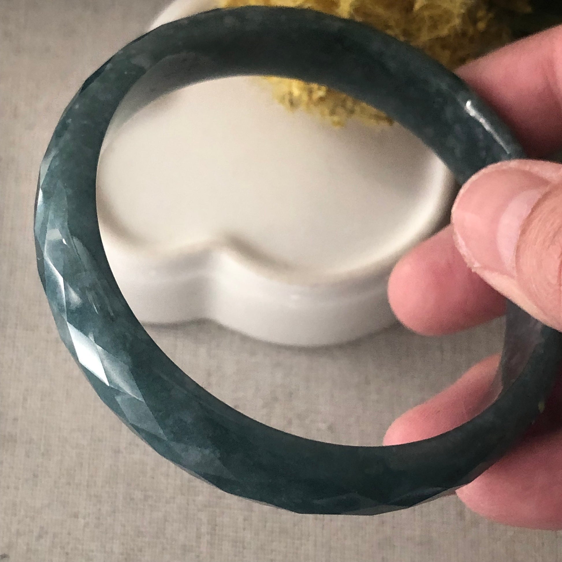 ✅ 57 mm Icy Blue Green Guatemalan Carved Jade D shaped Bangle