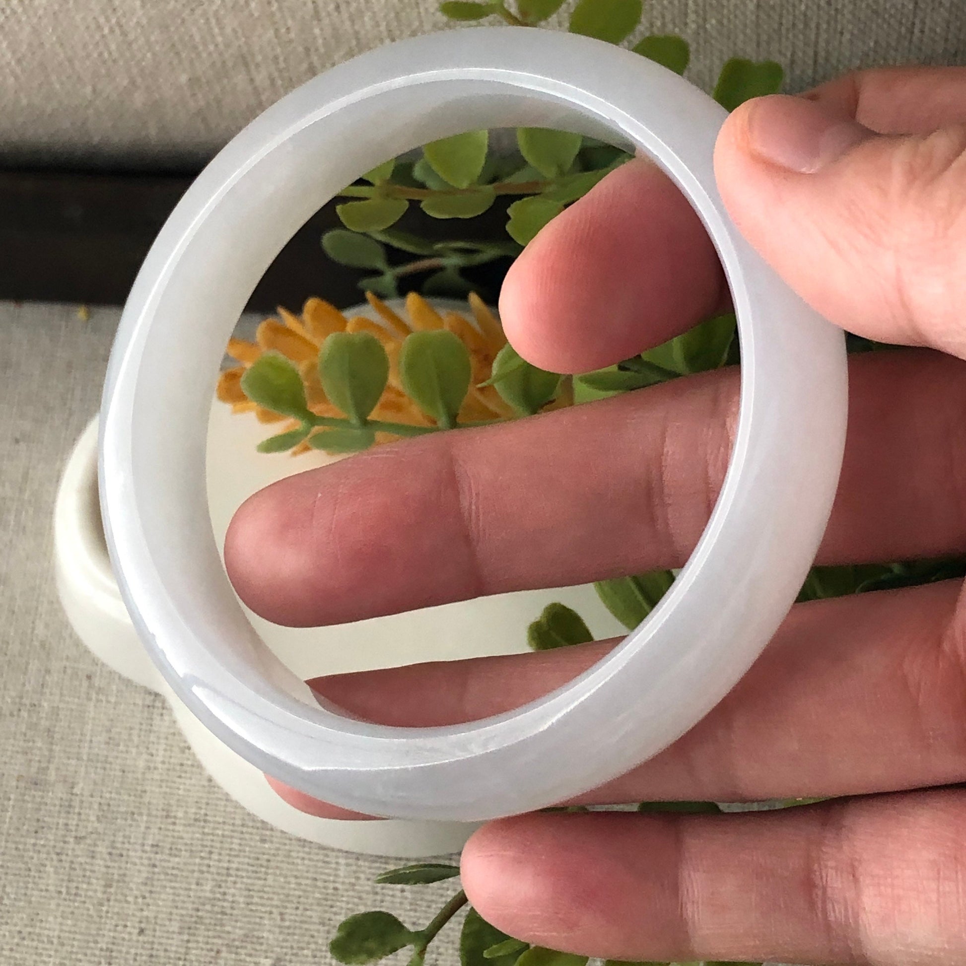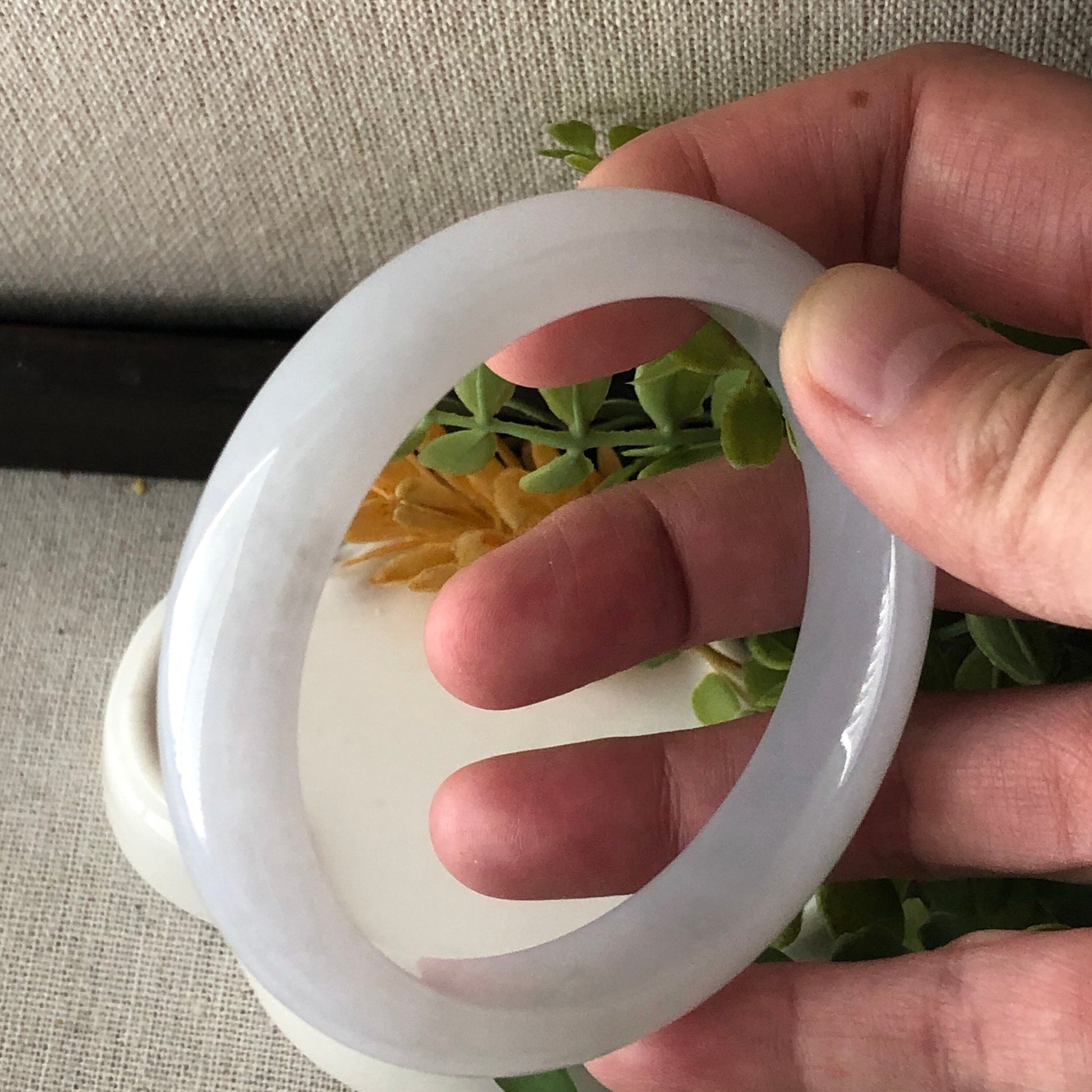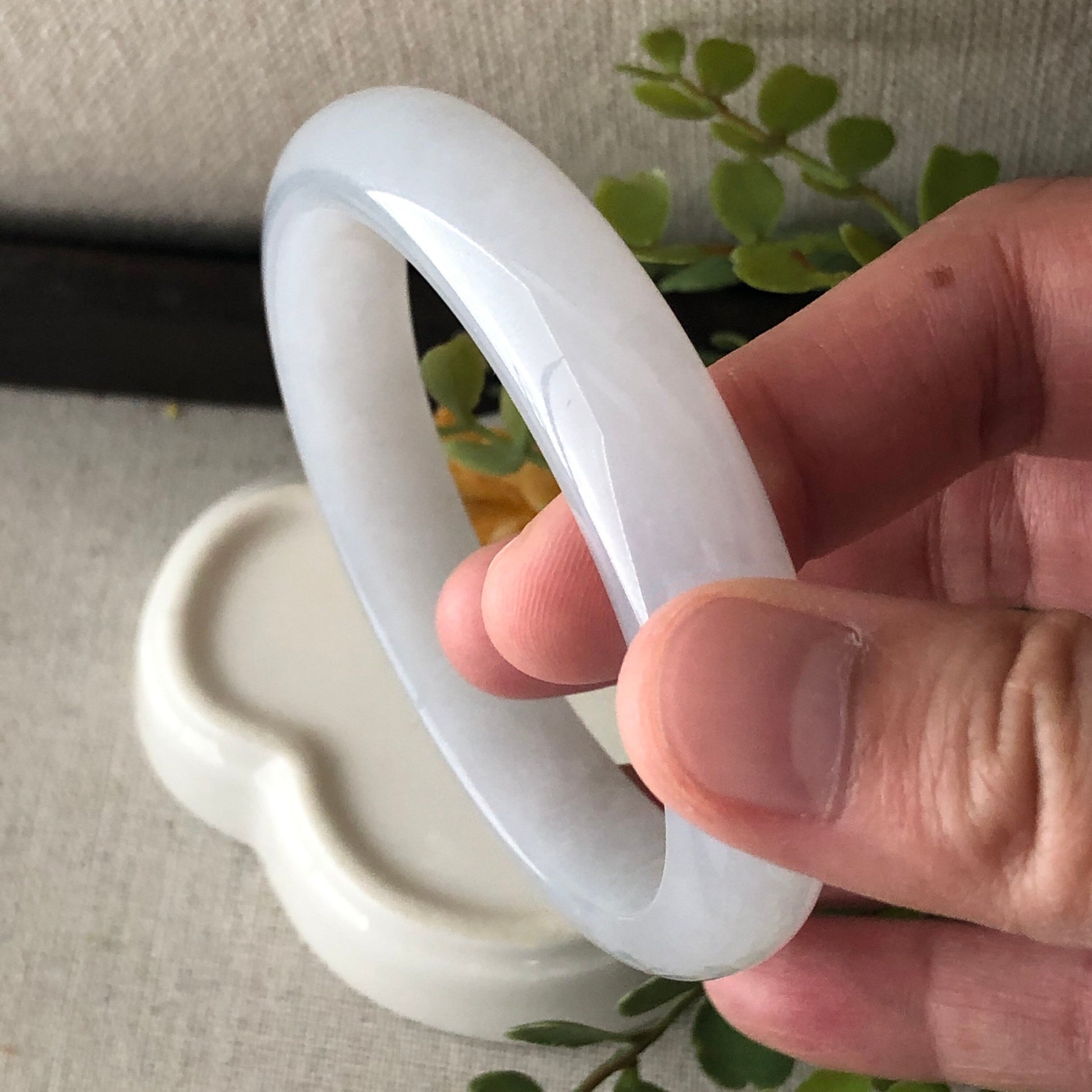57mm Icy Glossy Translucent D-Shaped Jadeite Jade Bangle RARE