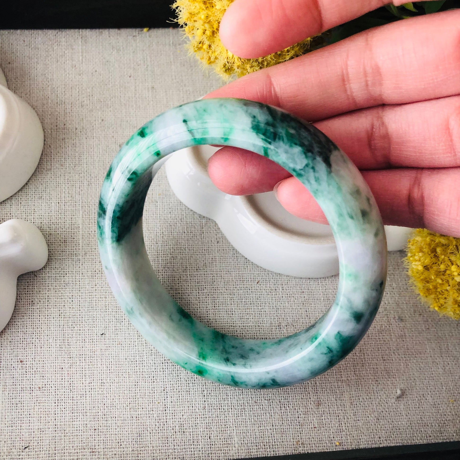 57mm Jadeite Jade Earthy Green Yellow Moss Bangle