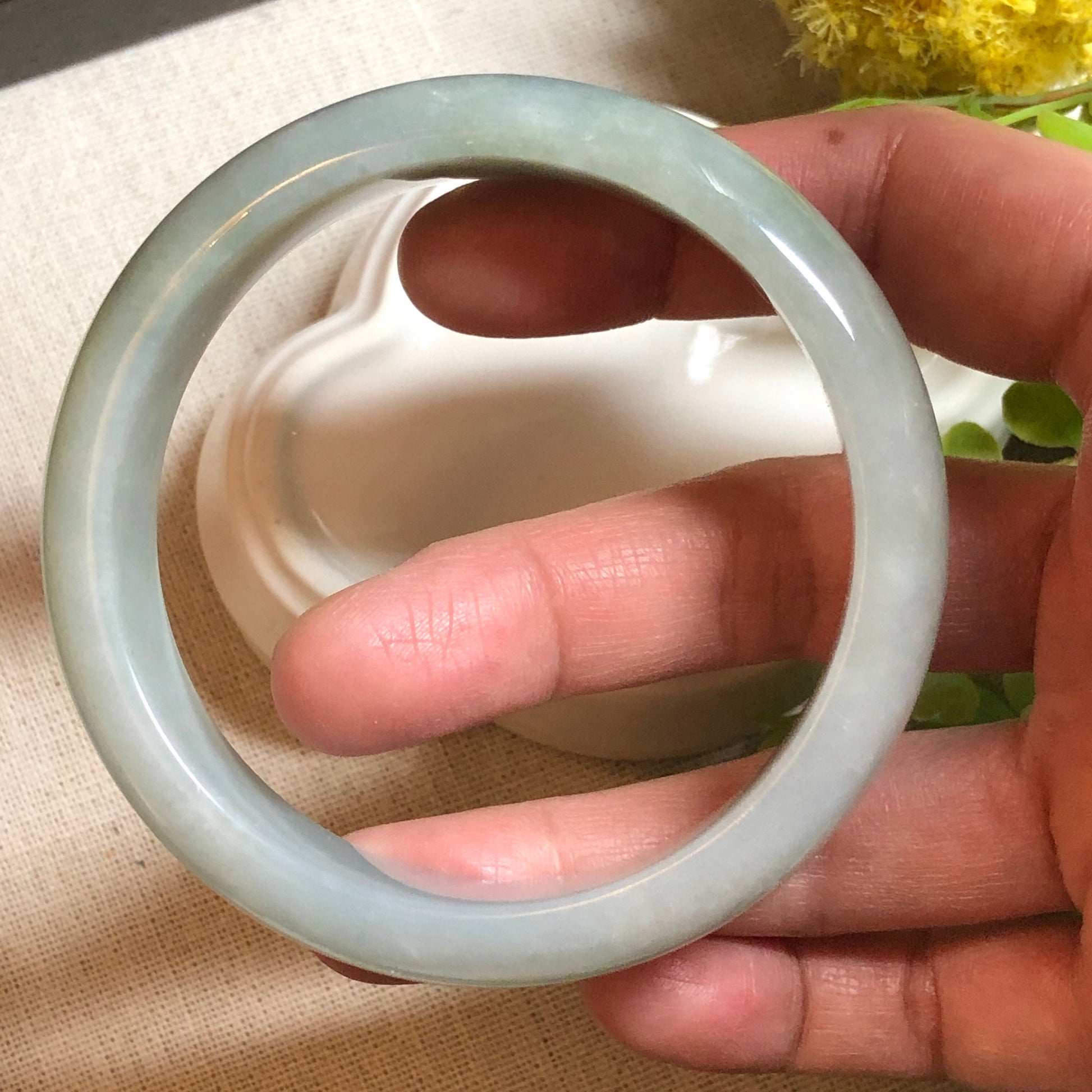 58 mm Jadeite Jade Icy Earthy Green Bangle