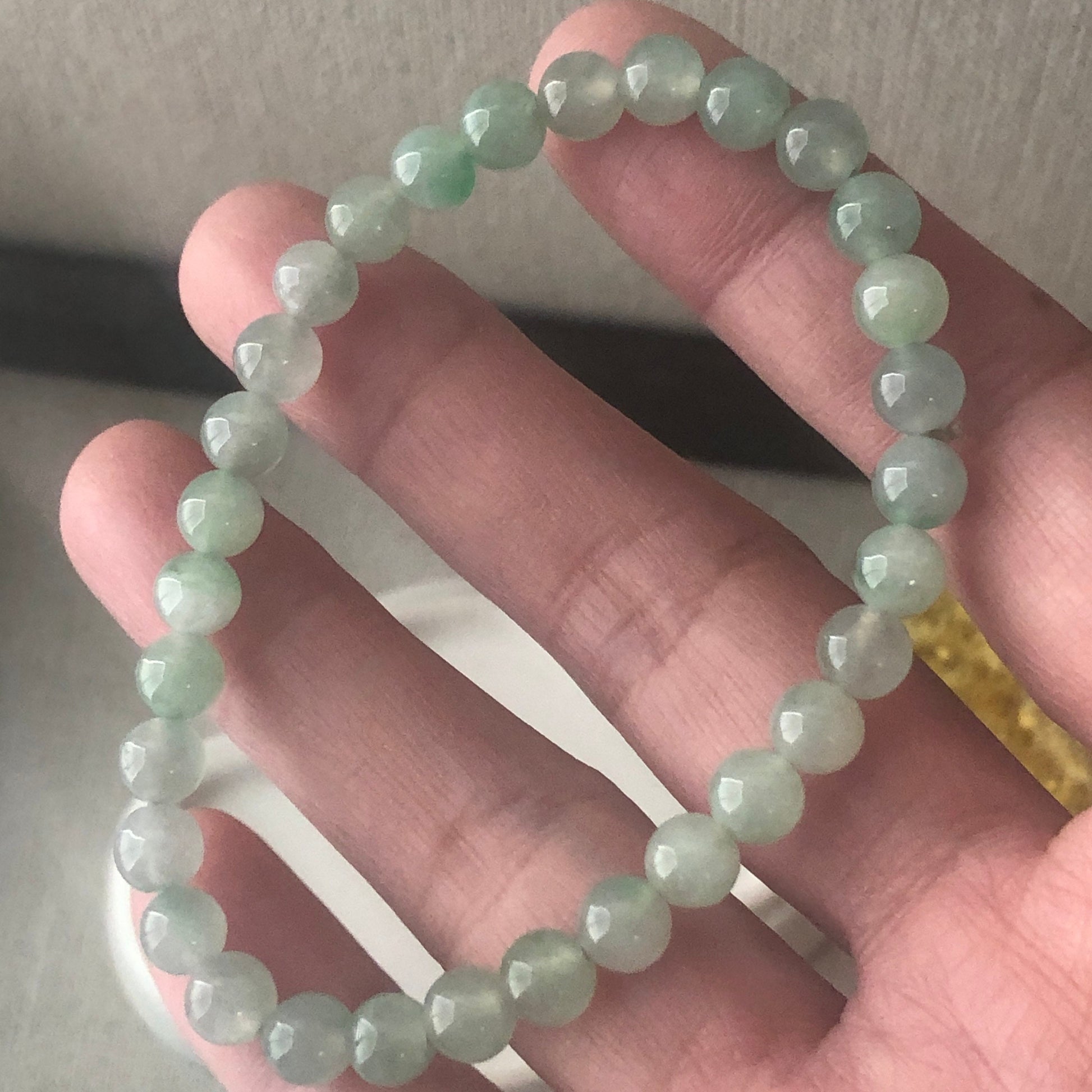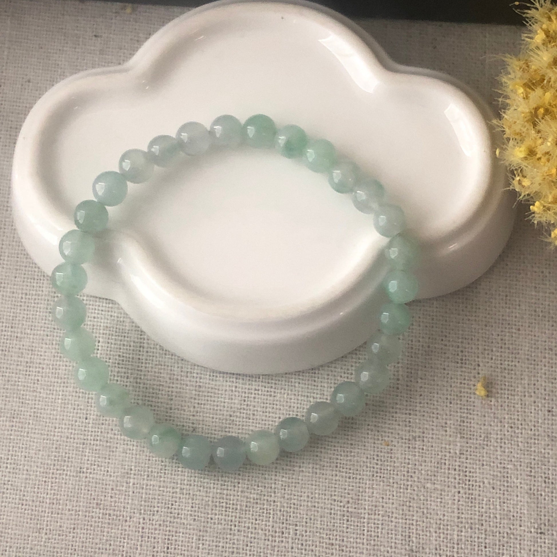 6 mm Icy Tint Green Jadeite Jade Bead Bracelet Glossy