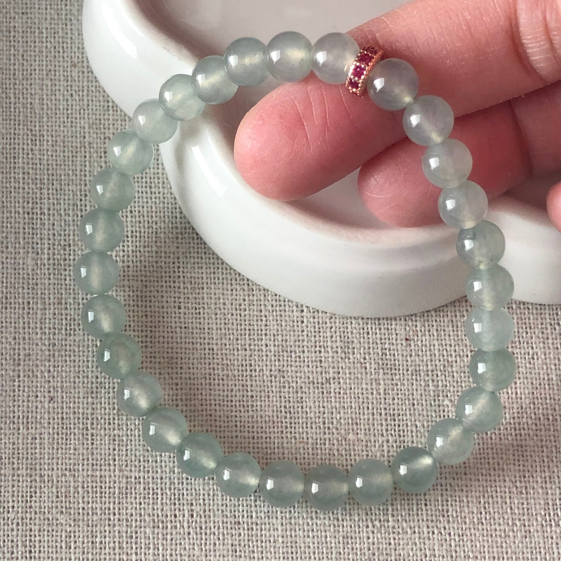 6 mm Moist Icy Gradient Tint Green Jadeite Jade Bead Bracelet